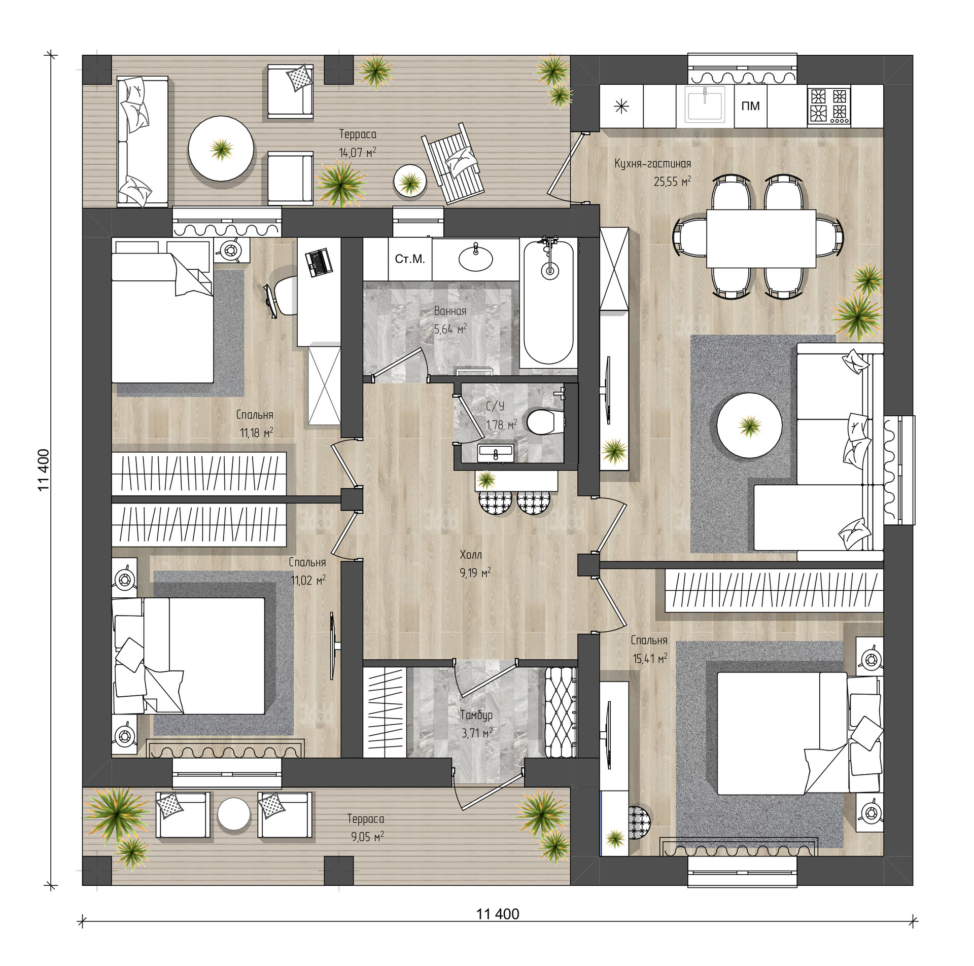 Общая площадь 105 м2