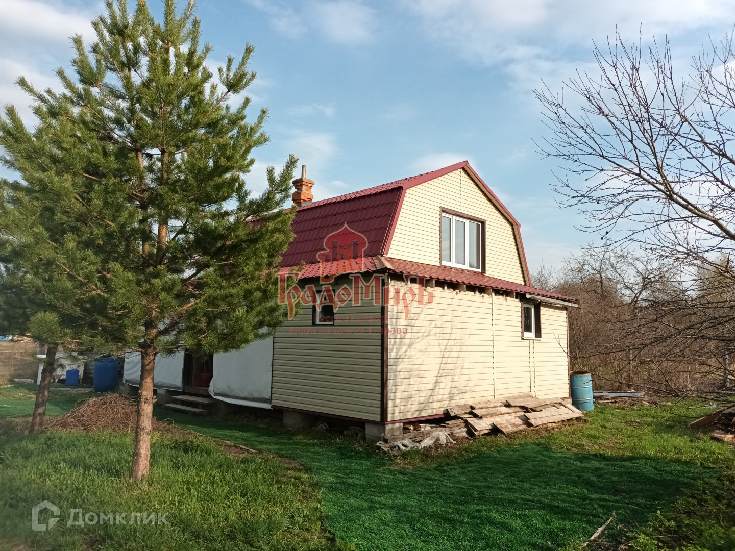 Дом построен на участке 15 соток огорожен сеткой рабица, земля обработана, имеются насаждения яблони, слива, смородина, малина.