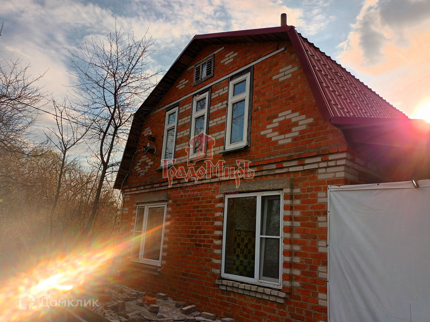 Дом двухэтажный, добротный, построен из кирпича на ленточном фундаменте, утеплен. Крыша накрыта металлочерепицей. Окна ПВХ. По всей длине дома пристроена большая открытая терраса.