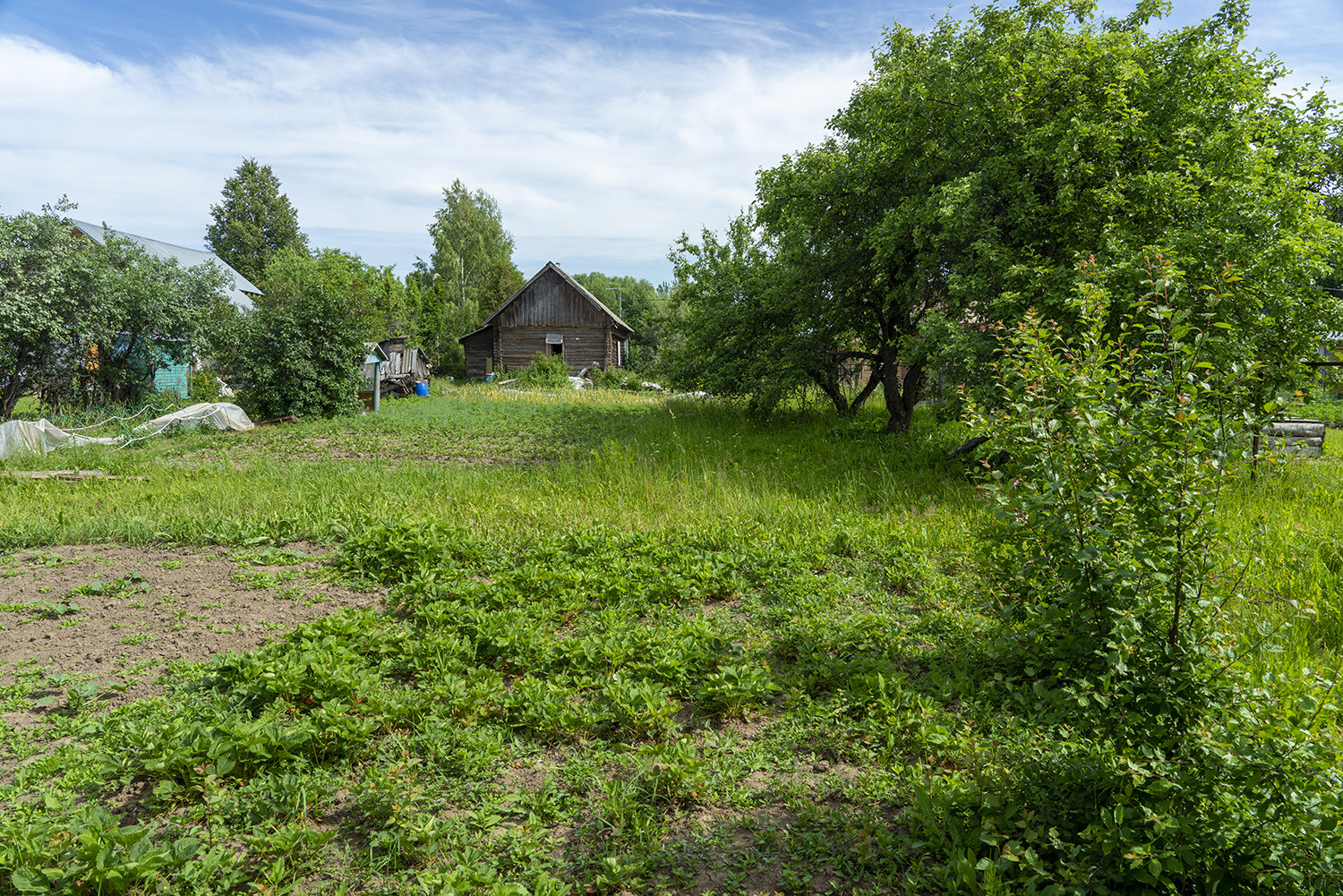 Участок с домом в деревне Рождествено, сама деревня на возвышенности, рядом с рекой Малый Киржач, очень живописное место, тихое, деревня не "проходная", т.е. через нее не проходят дороги и чужие не ездят. Дом старый, но всё еще крепкий, проведена новая электрика, обслуживает энергокомпания Энергосбыт Волга. Есть русская печь, действующая, можно отапливать помещение, греться лежа не ней и конечно можно готовить, печь пирожки и прочее, очень вкусно получается. Во дворе есть скважина, глубина уровня воды 56 м,  мощный итальянский насос. Вода кристально чистая. На участке есть несколько яблонь, крыжовник, смородина, клубника. Есть погреб для хранения запасов на зиму. Большой участок, 33 сотки. На участке есть свой небольшой лесок, в нем в сезон можно собирать грибы.