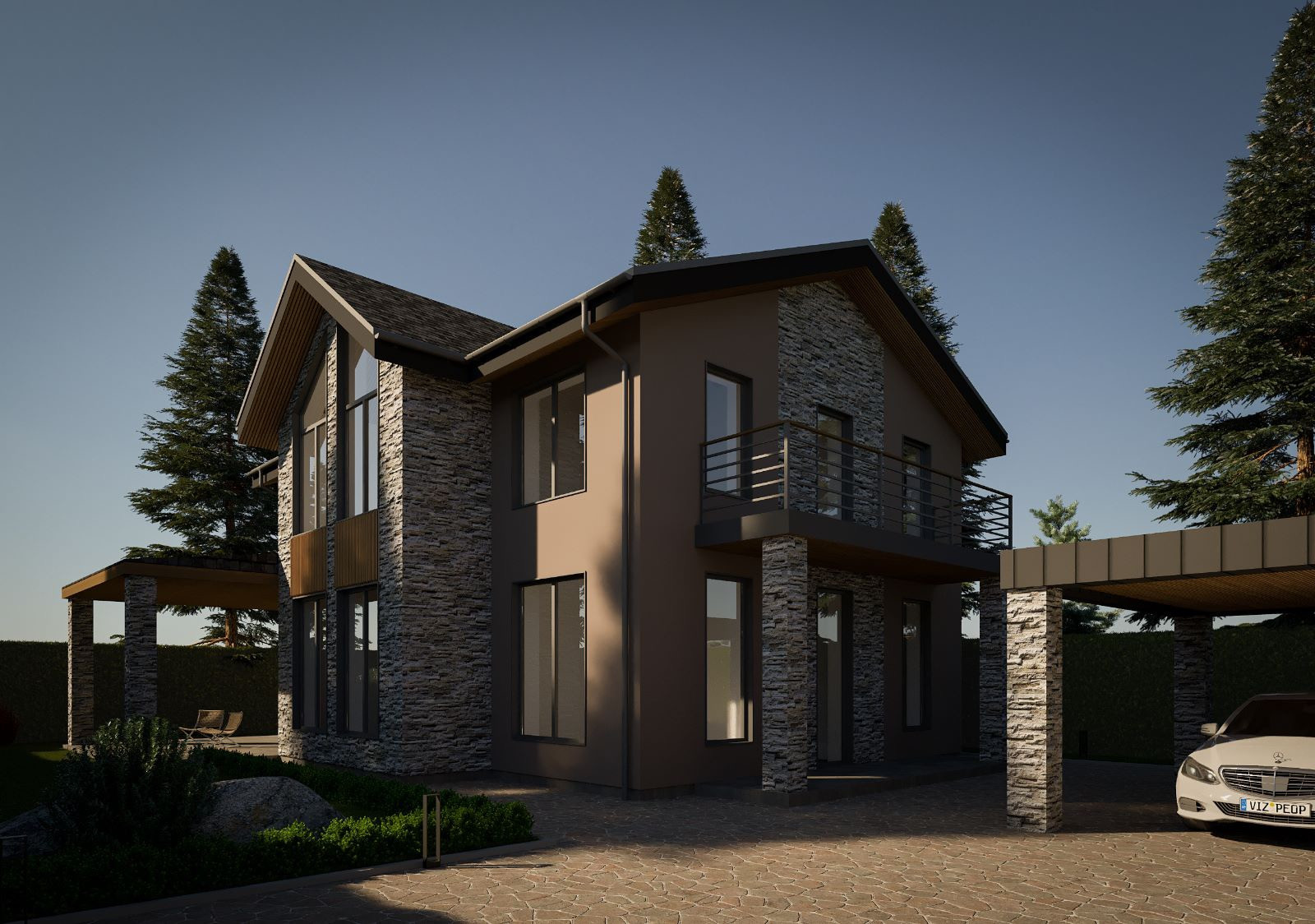 2-й этаж: 3 спальни, 2 санузла, гардеробная.