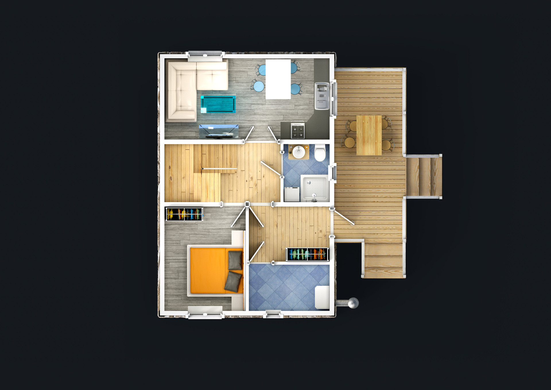 - Стены внутри – евровагонка, снаружи – имитация бруса.