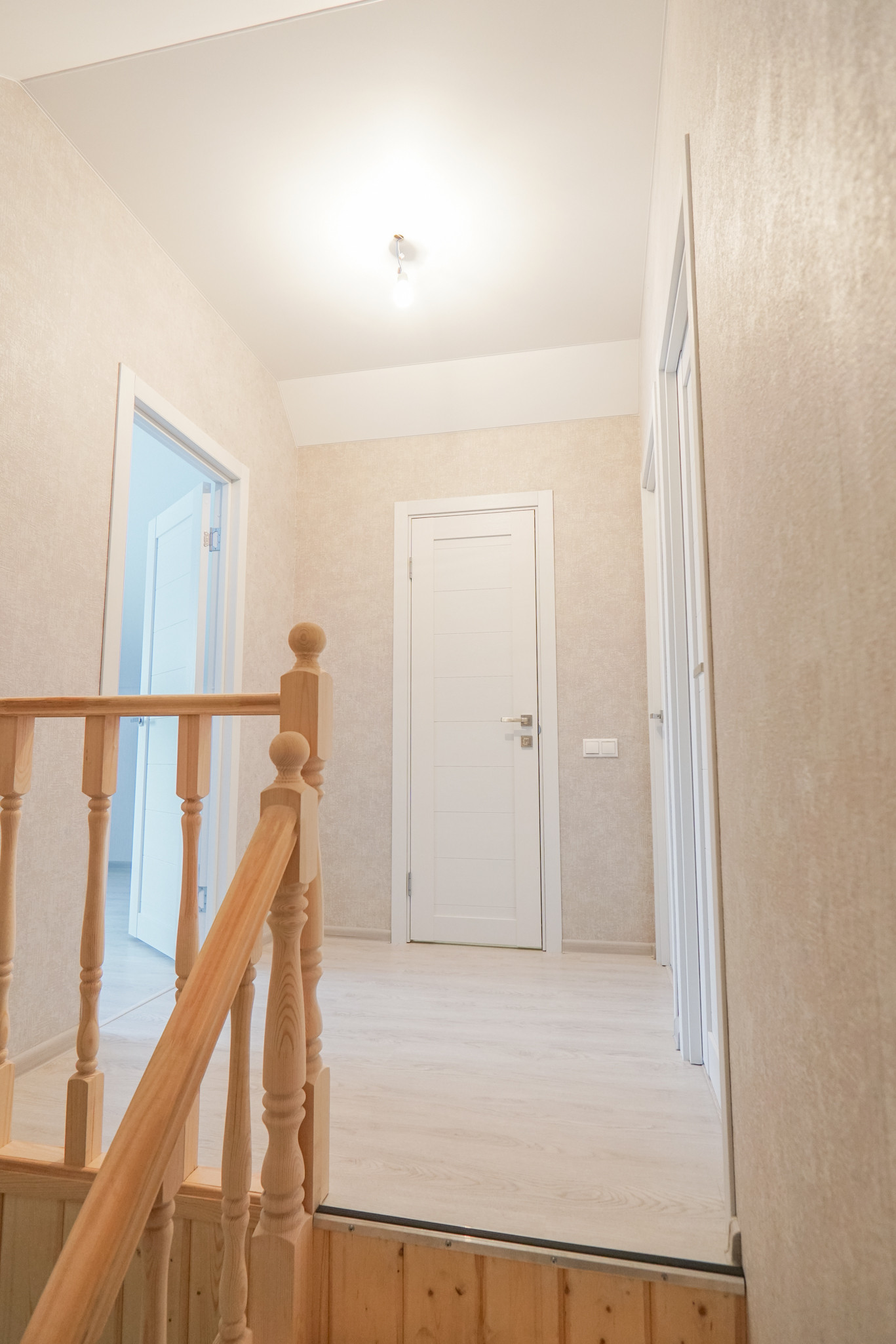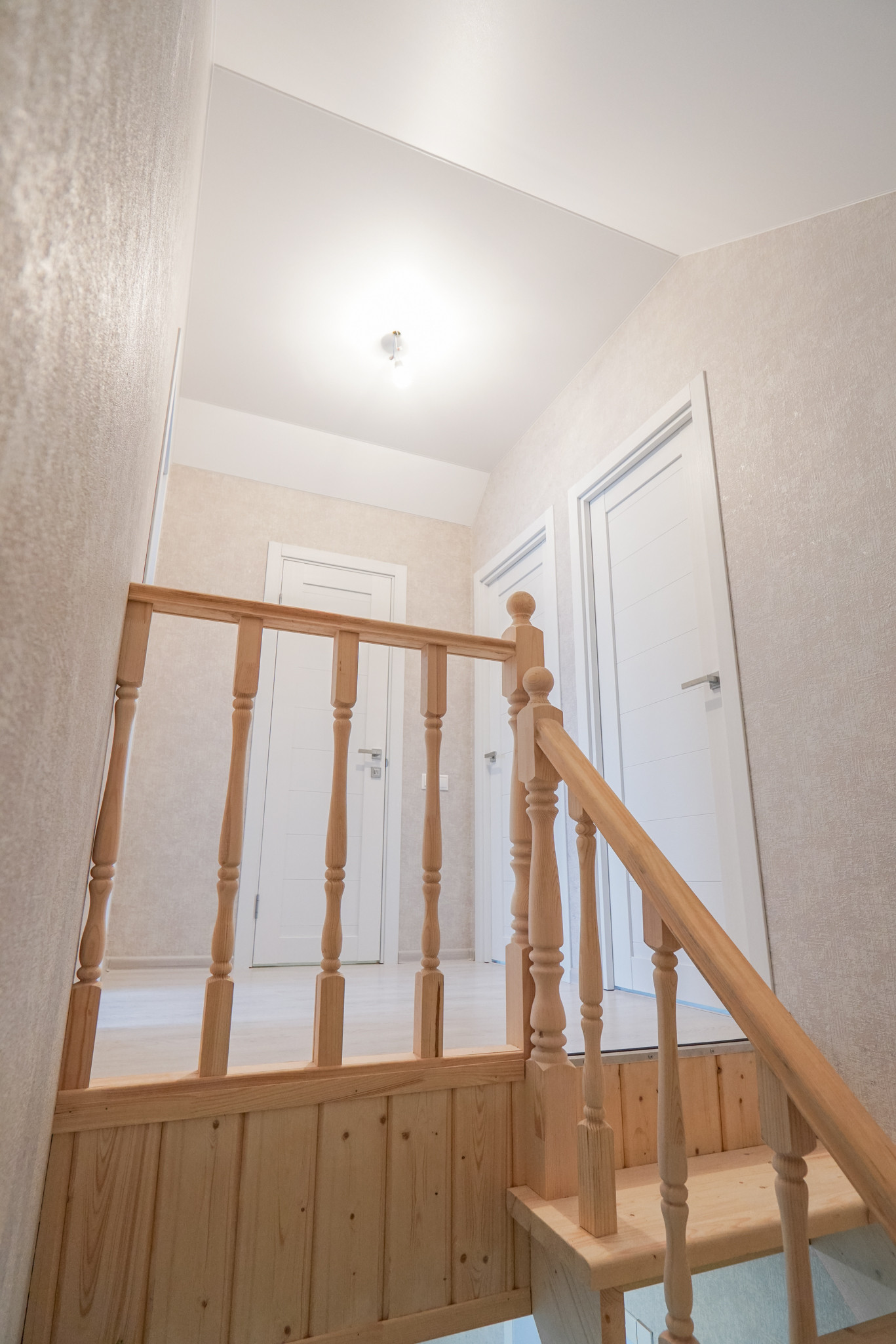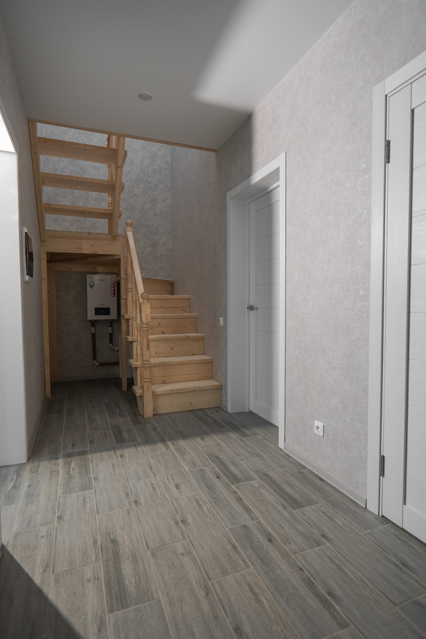 В доме два этажа. Первый этаж - кухня-гостиная, санузел, комната. Второй этаж - три комнаты, санузел.