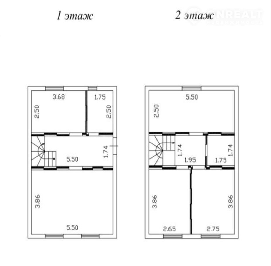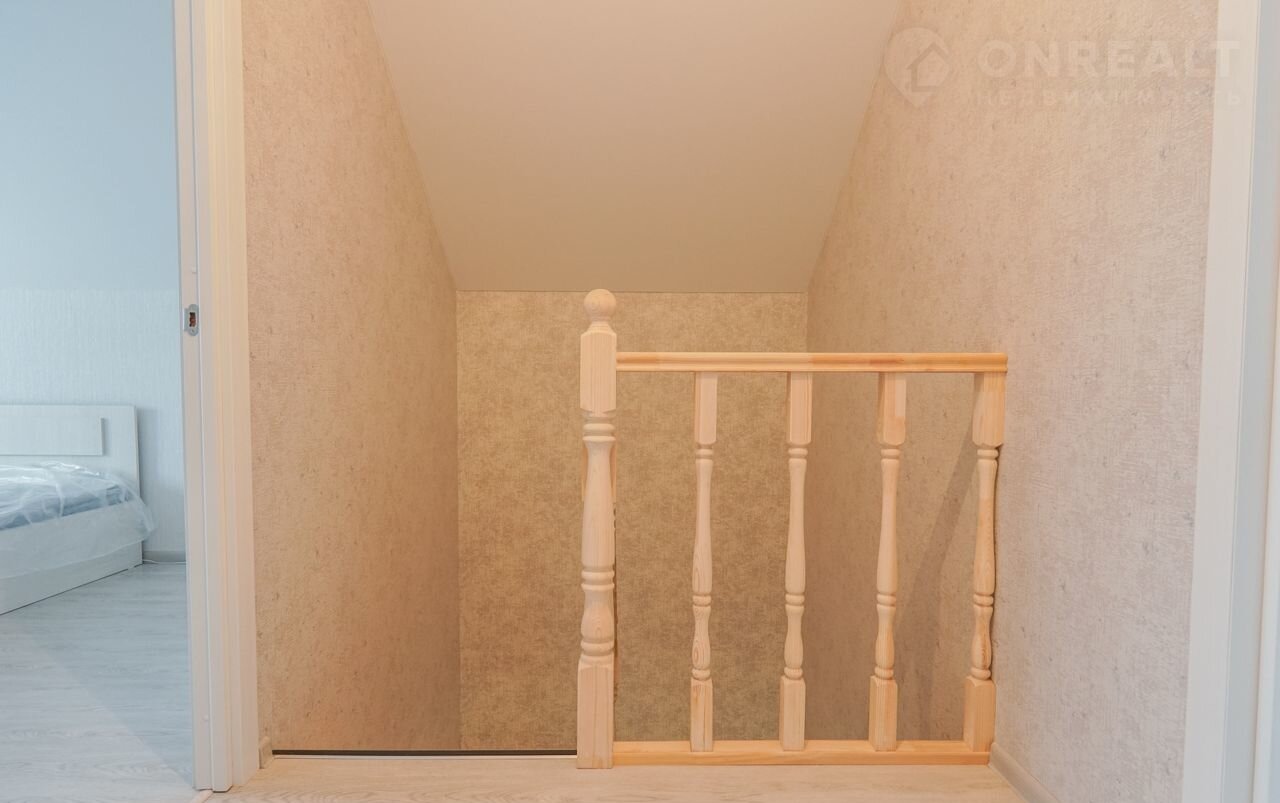 В доме два этажа. Первый этаж - кухня-гостиная, санузел, комната. Второй этаж - три комнаты, санузел.