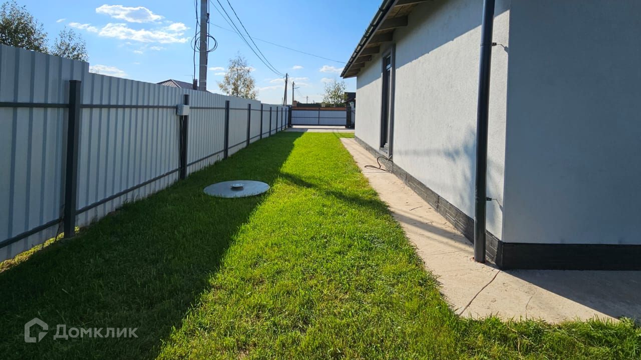 Участок полностью огорожен забором, есть автоматические ворота для въезда и парковочное место.  Везде засеян пушистый газон и есть красивые дорожки.