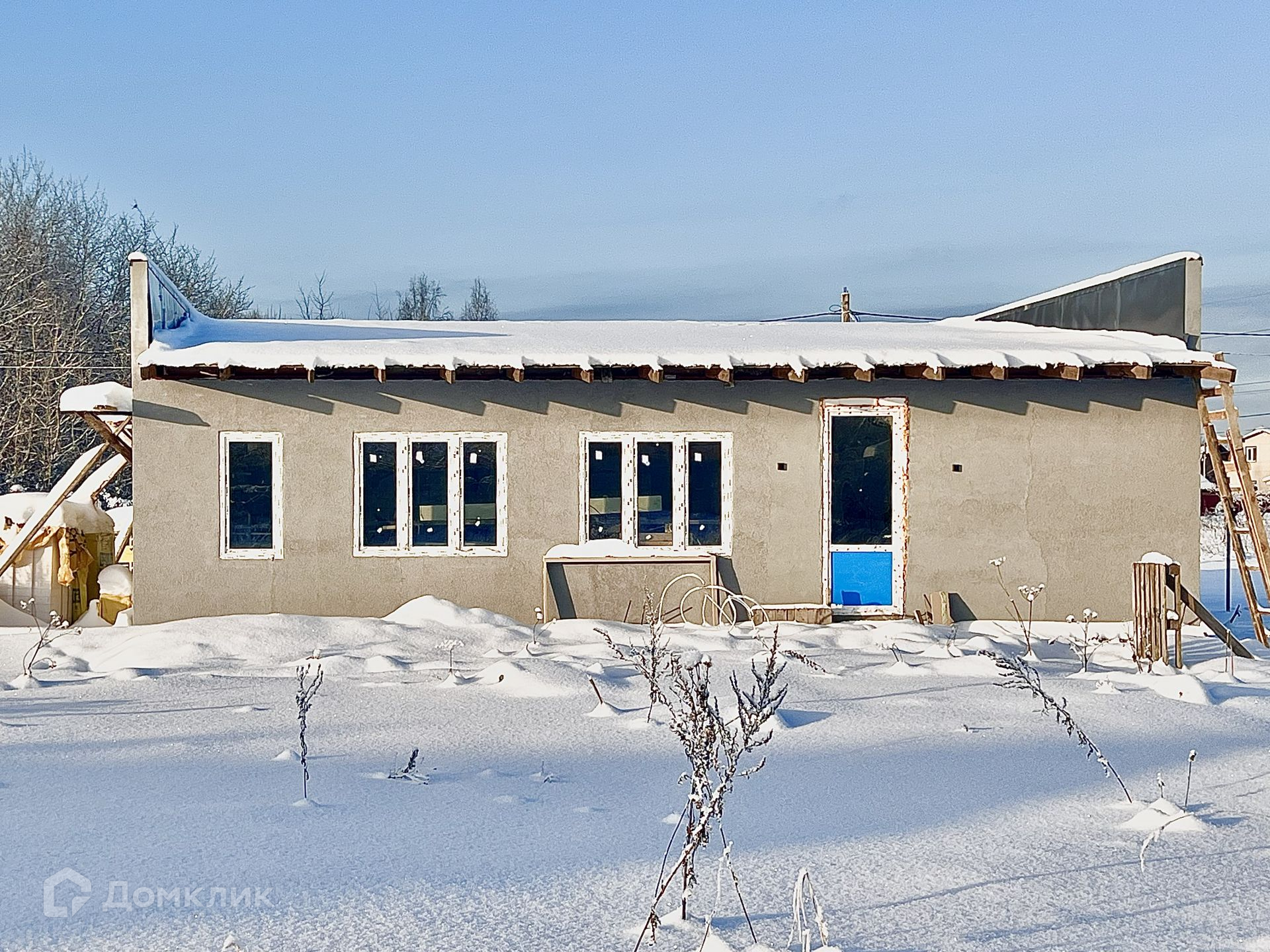 Дом был построен в 2022 году и имеет общую площадь 114 кв.м. Фундамент выполнен в виде ленточного, стены изготовлены из пеноблока, крыша покрыта металлочерепицей. Окна оснащены стеклопакетами, фасады дома покрыты камешковой штукатуркой.