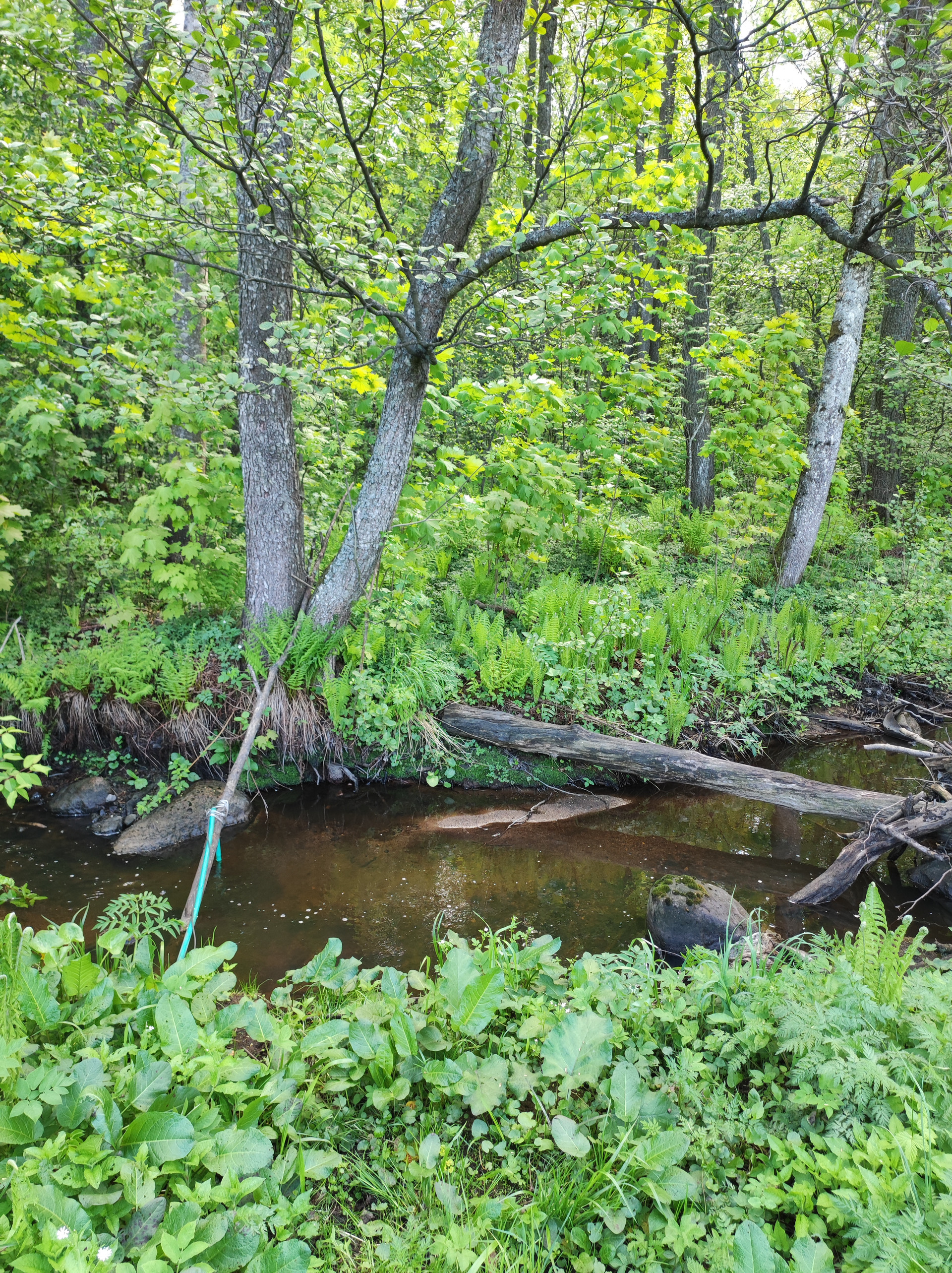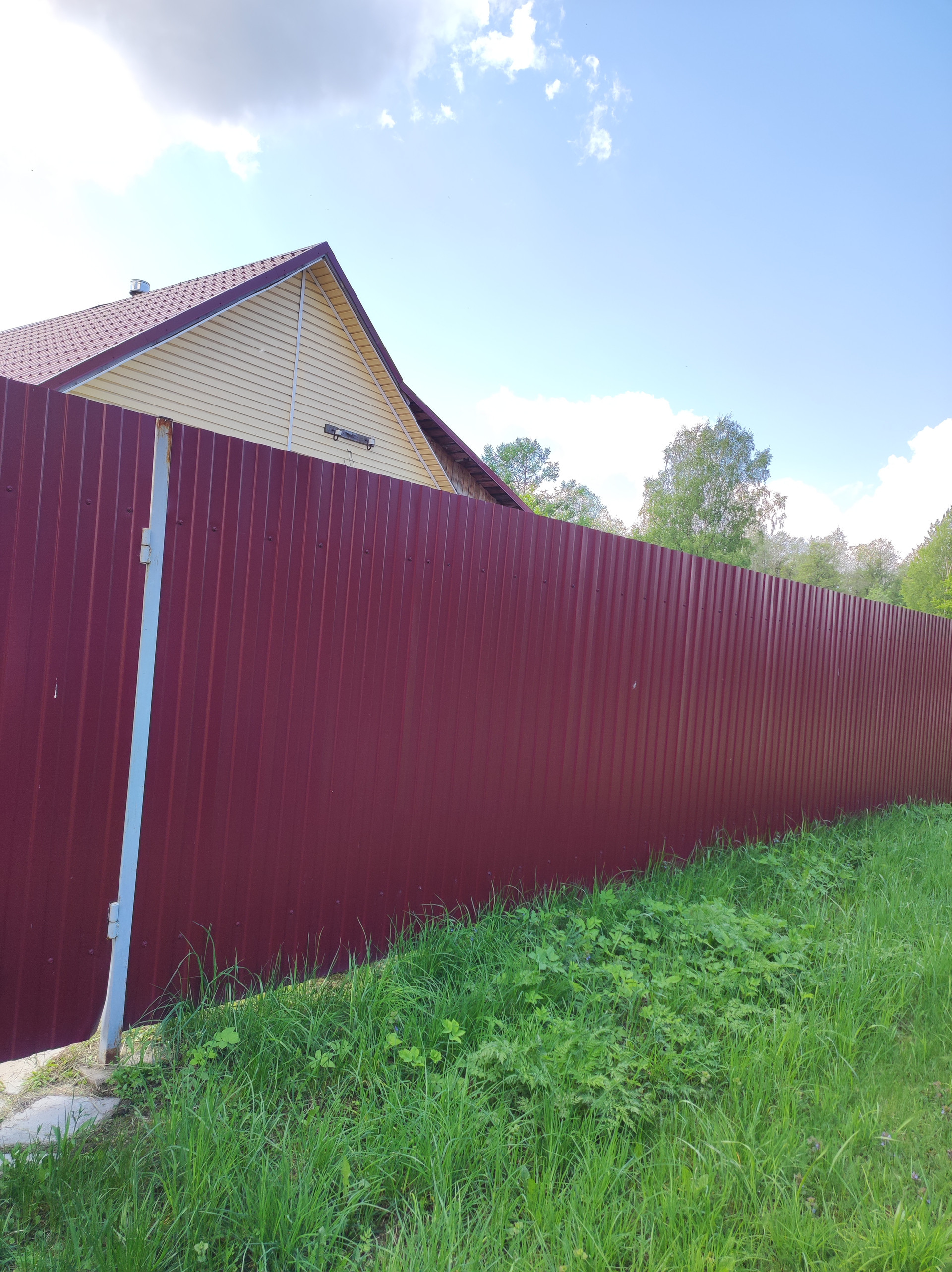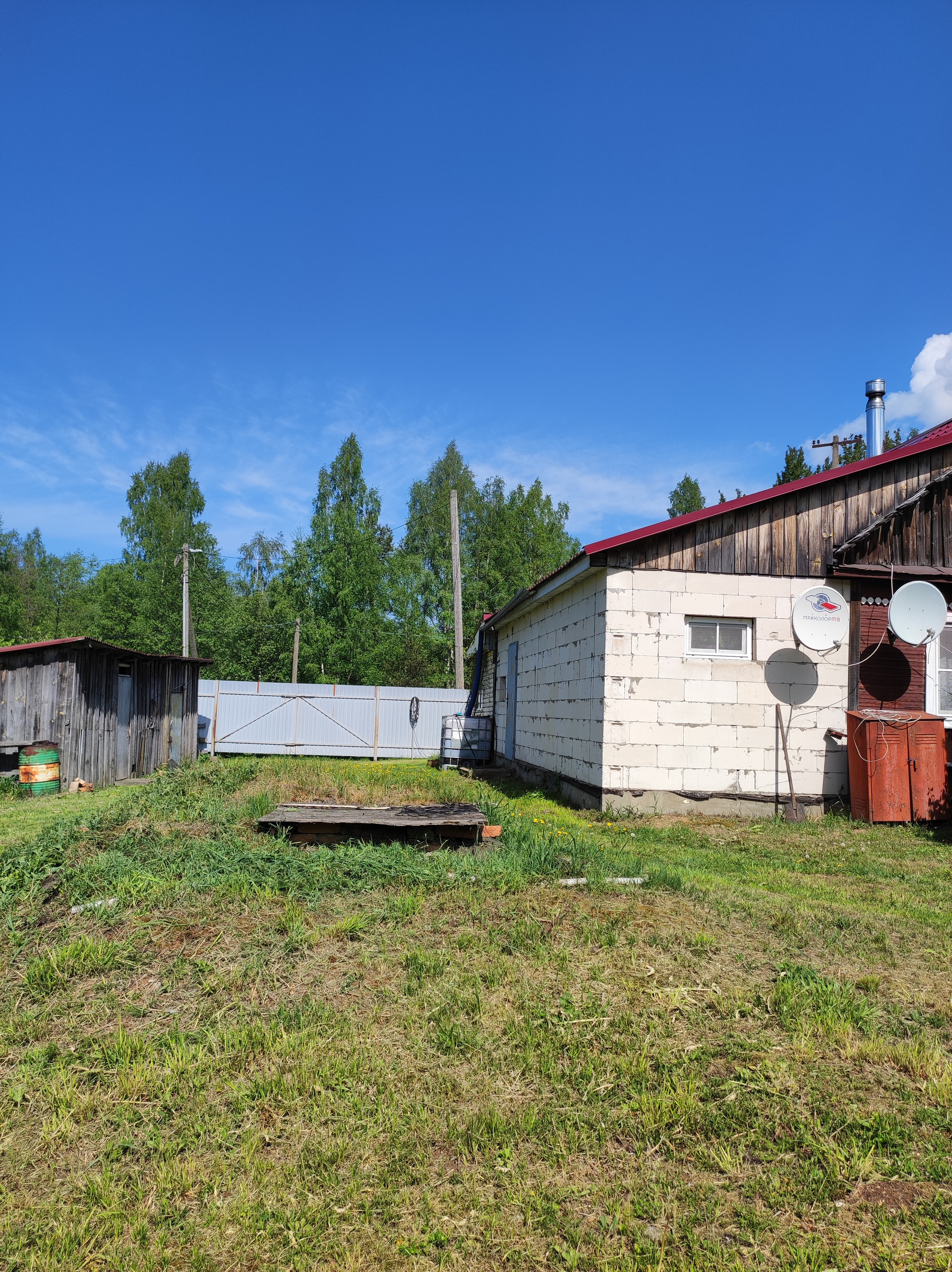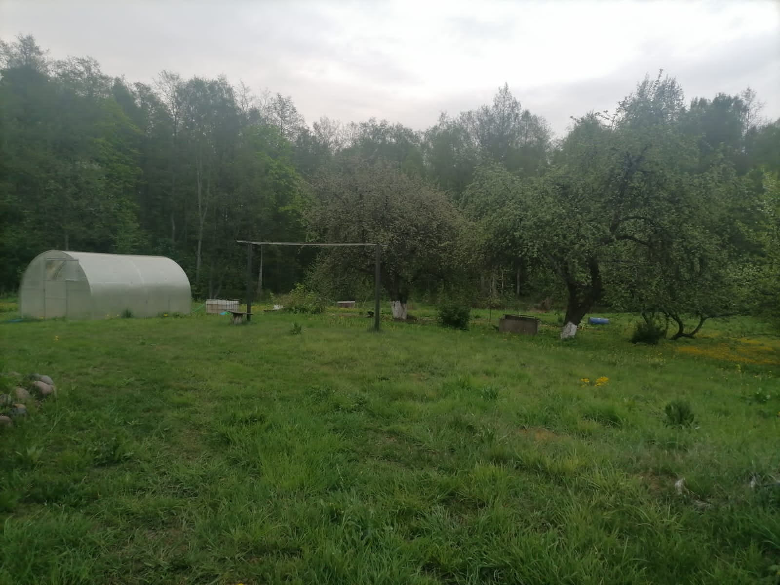участок огорожен, соседи только с одной стороны (от дороги огорожен забором, со второй стороны течет ручей, воду можно использовать для полива)