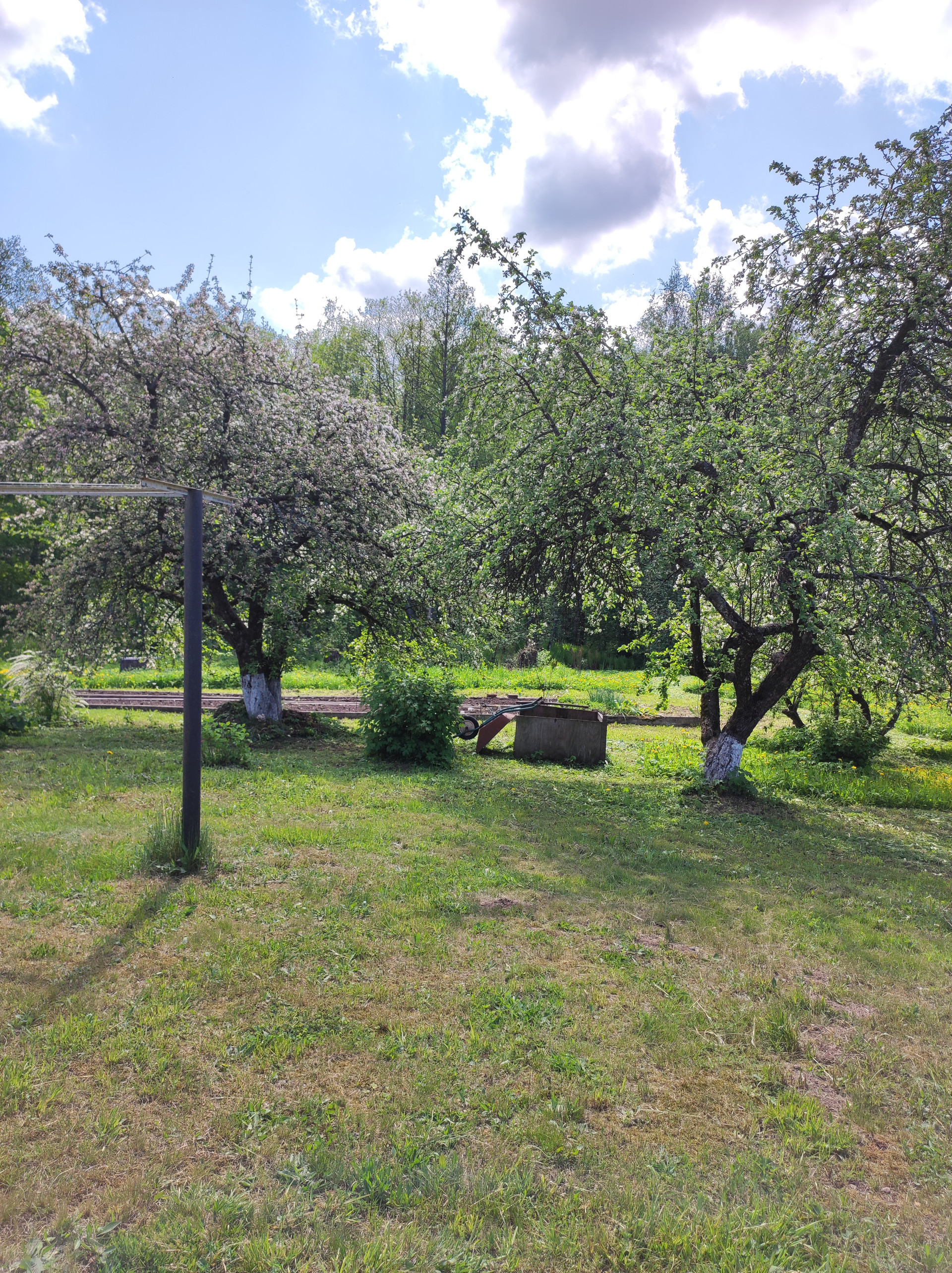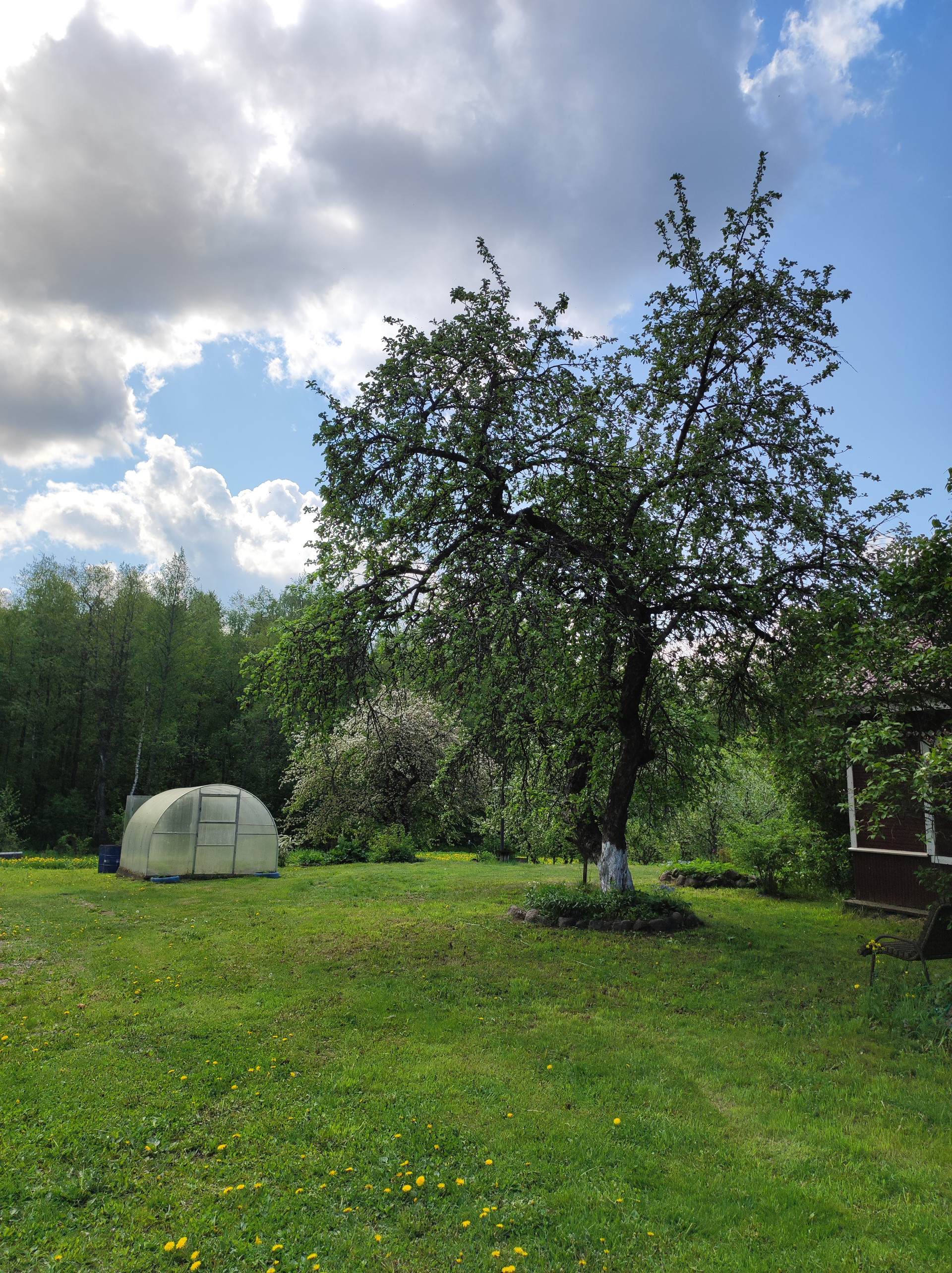 на участке разработаны грядки, имеется теплица, плодовые кусты и деревья