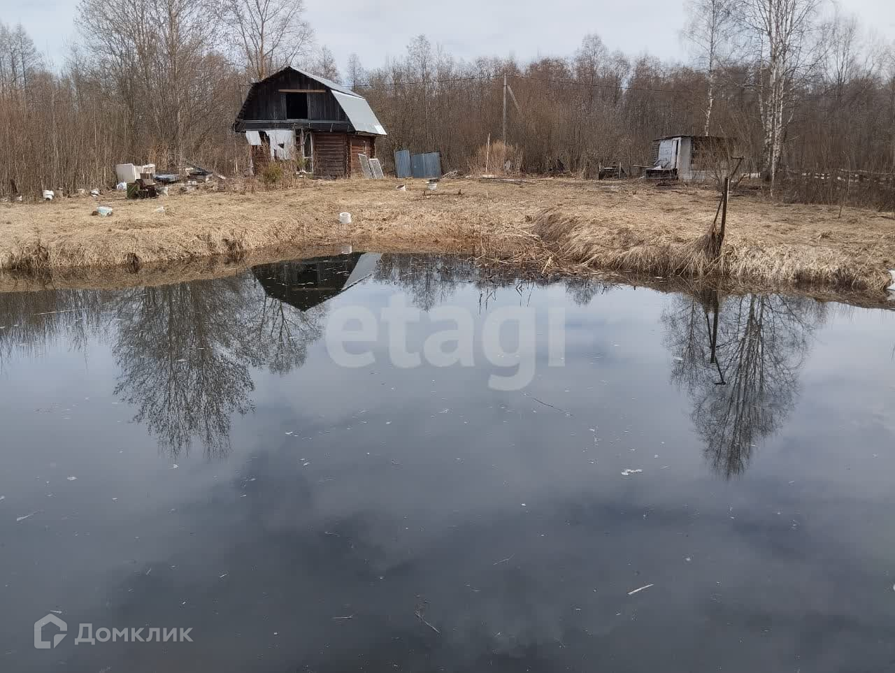 На участке есть пруд, построена хоз.постройка 3*6м для хранения различного инвентаря и инструмента.