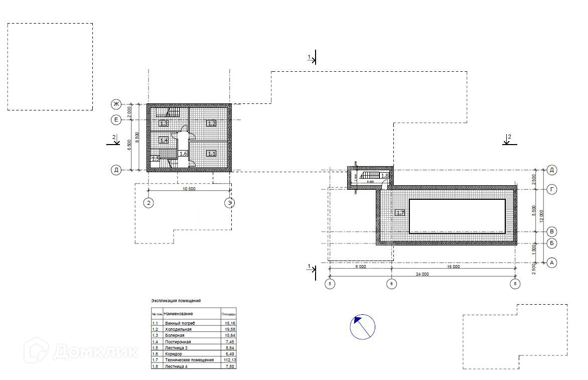 Цоколь: холл, винный погреб, постирочная, холодильная комната, бойлерная, технические помещения;