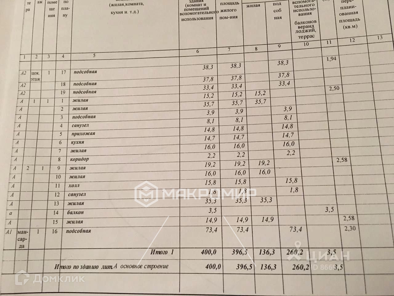 Общая площадь 396 м2