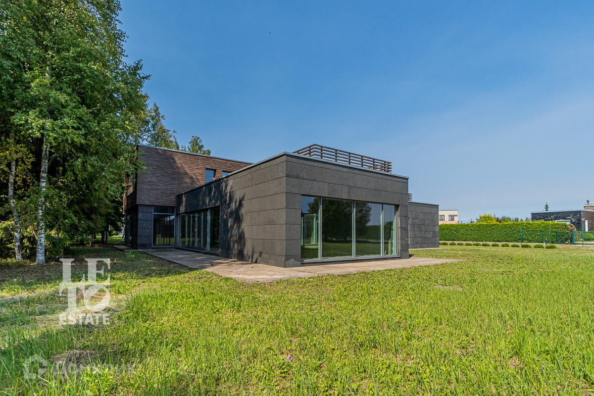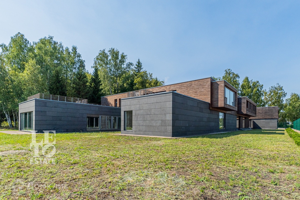 Арт. 34969105 Вашему вниманию предлагается замечательный дом на лесном участке в элитном коттеджном поселке. Проект дома выполнен известной архитектурной мастерской в современном стиле с панорамным остеклением. Со второго этажа открывается вид на гольф-поля. В доме все основные центральные коммуникации.