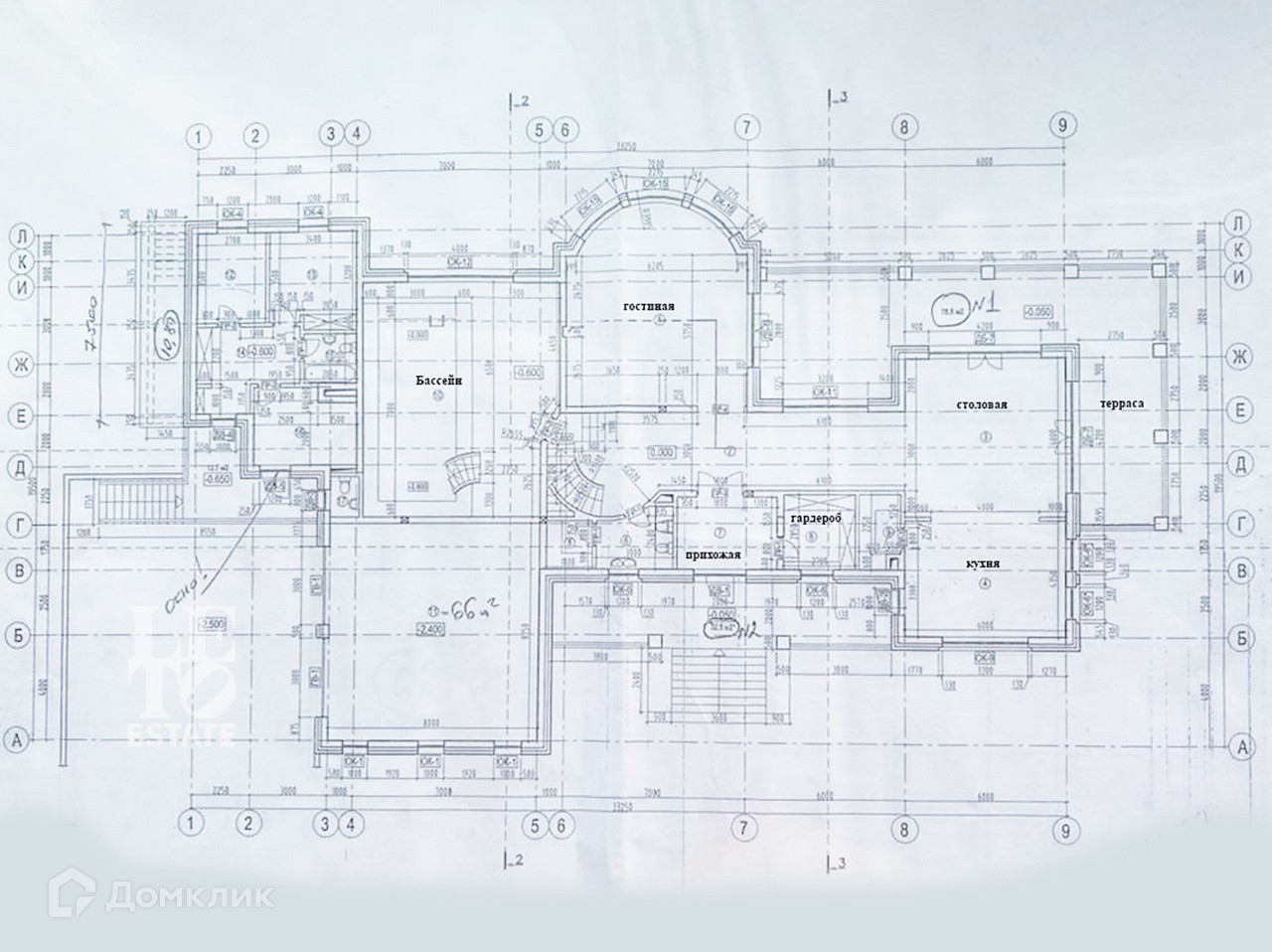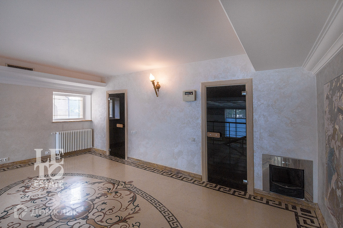 Цокольный этаж – бассейн, сауна, хамам, комната отдыха, кинотеатр, помещения свободного назначения.