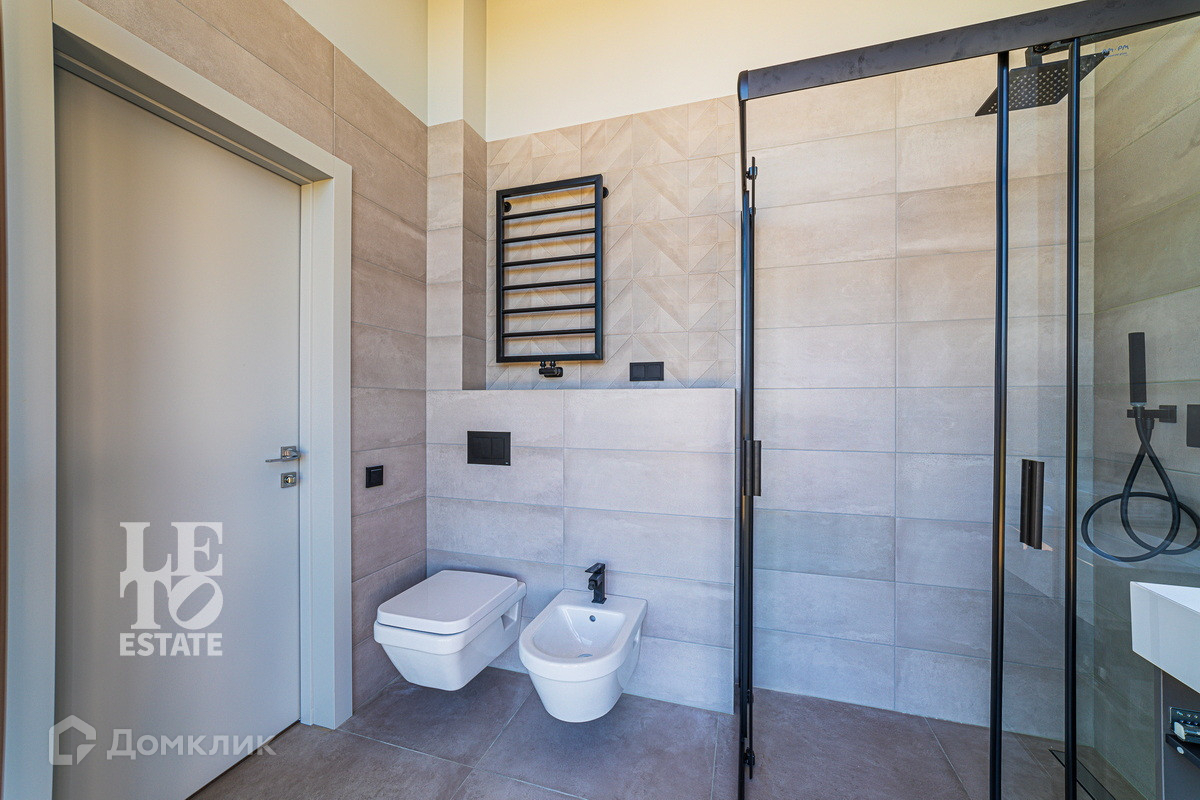 Второй этаж: мастер-спальня с гардеробной и ванной комнатой, две дополнительные спальни со своими санузлами, а также просторная терраса над гаражом с выведенными коммуникациями.