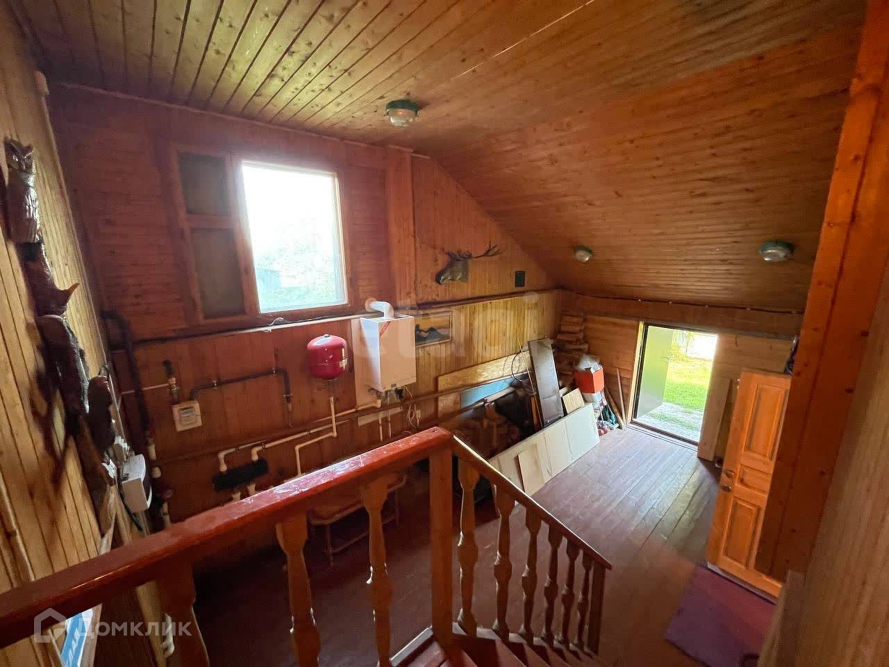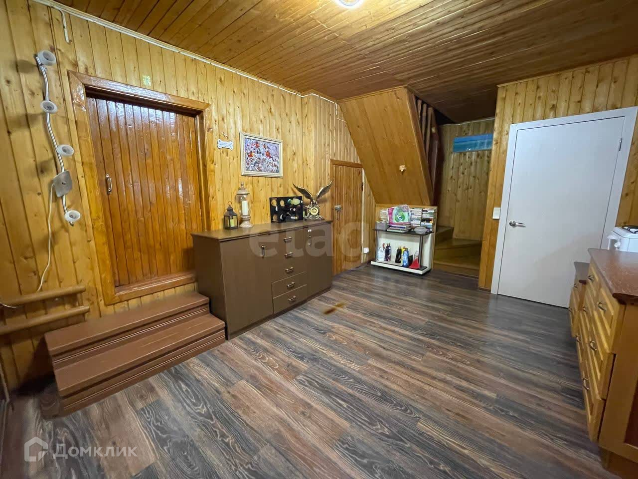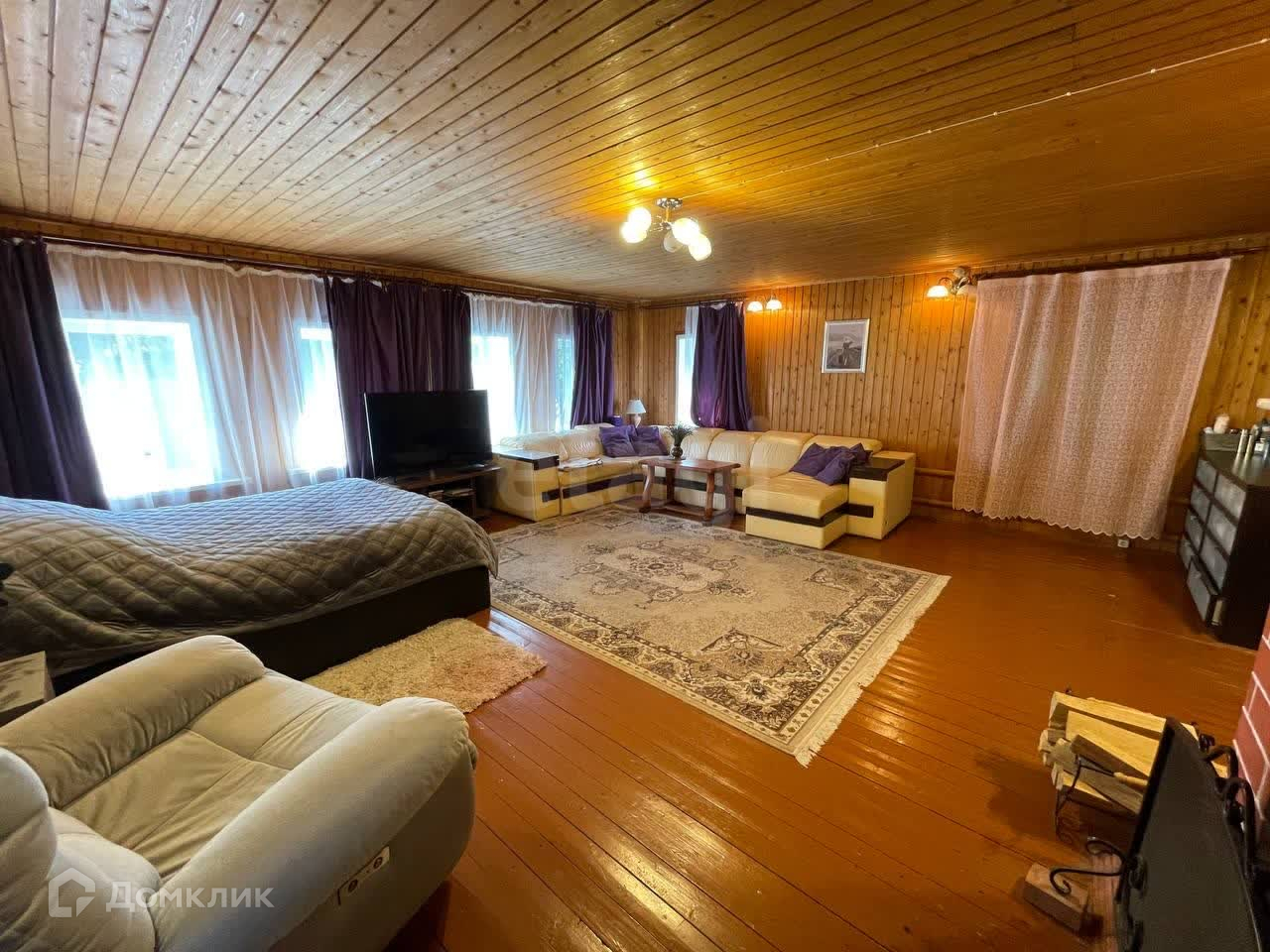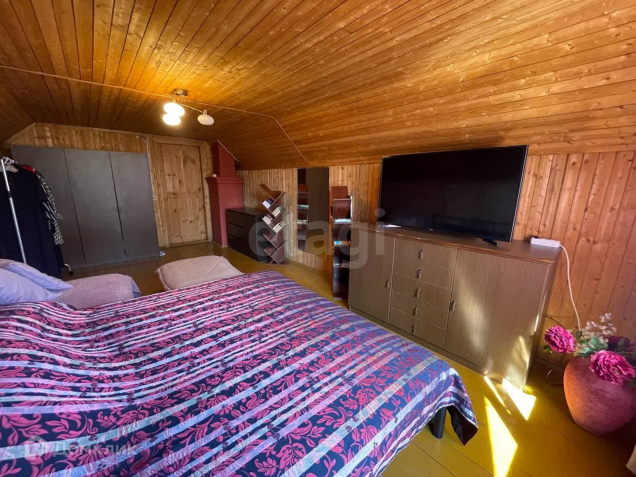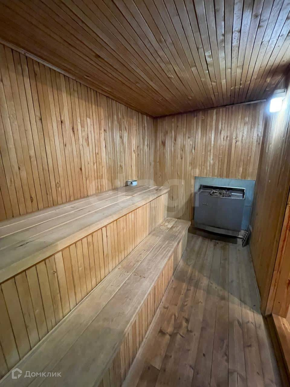 Дом построен из рубленого бруса и утеплен. В доме 3 спальных комнаты и гостиная с выходом на участок. Заведено электричество и так же используется газ. Вода из колодца, все насосы установлены, проблем с горячей водой нет. В доме много подсобных помещений под хранение вещей. Есть гараж, при желании можно его оборудовать и использовать по назначению (подъезд к гаражу с воротами тоже присутствует). Так же присутствует сауна с помывочной.