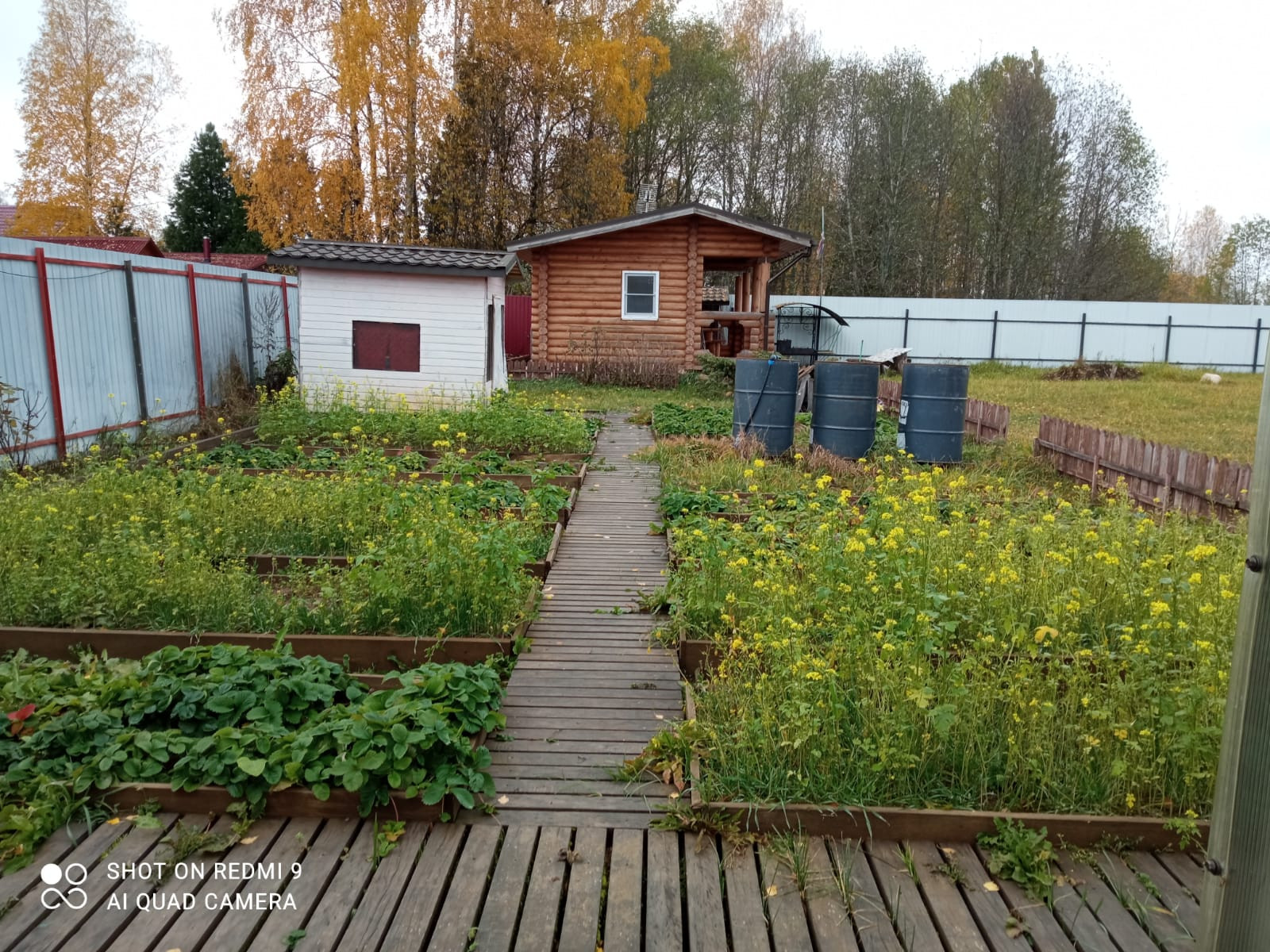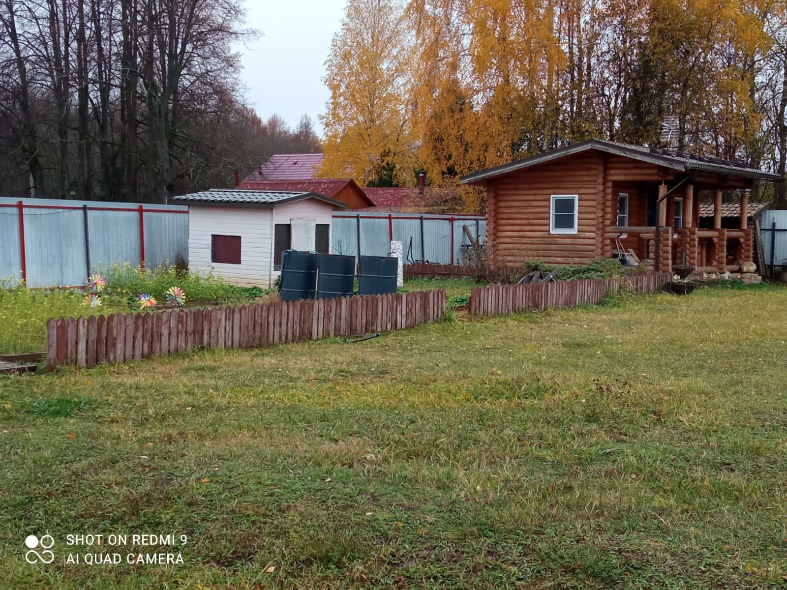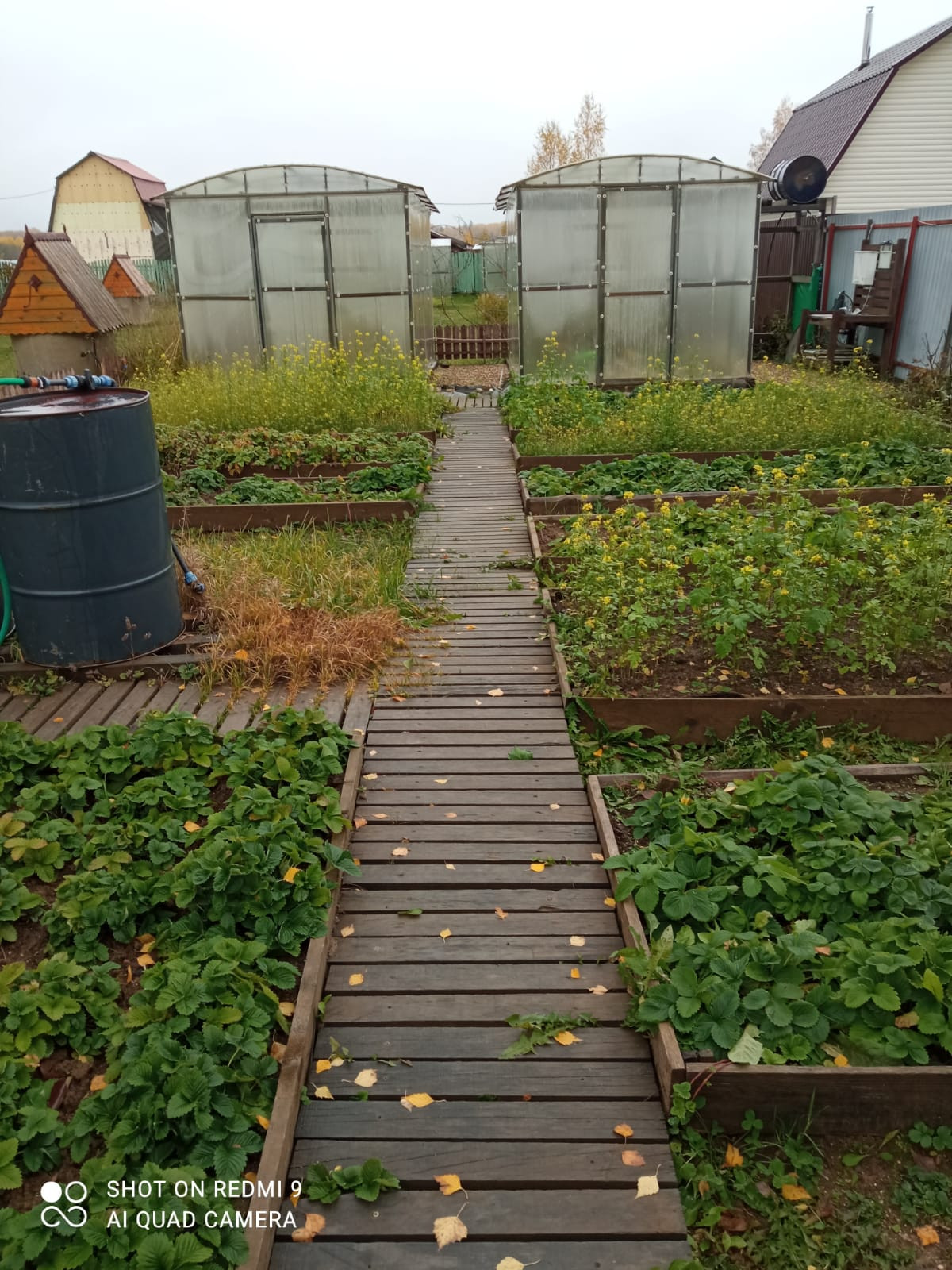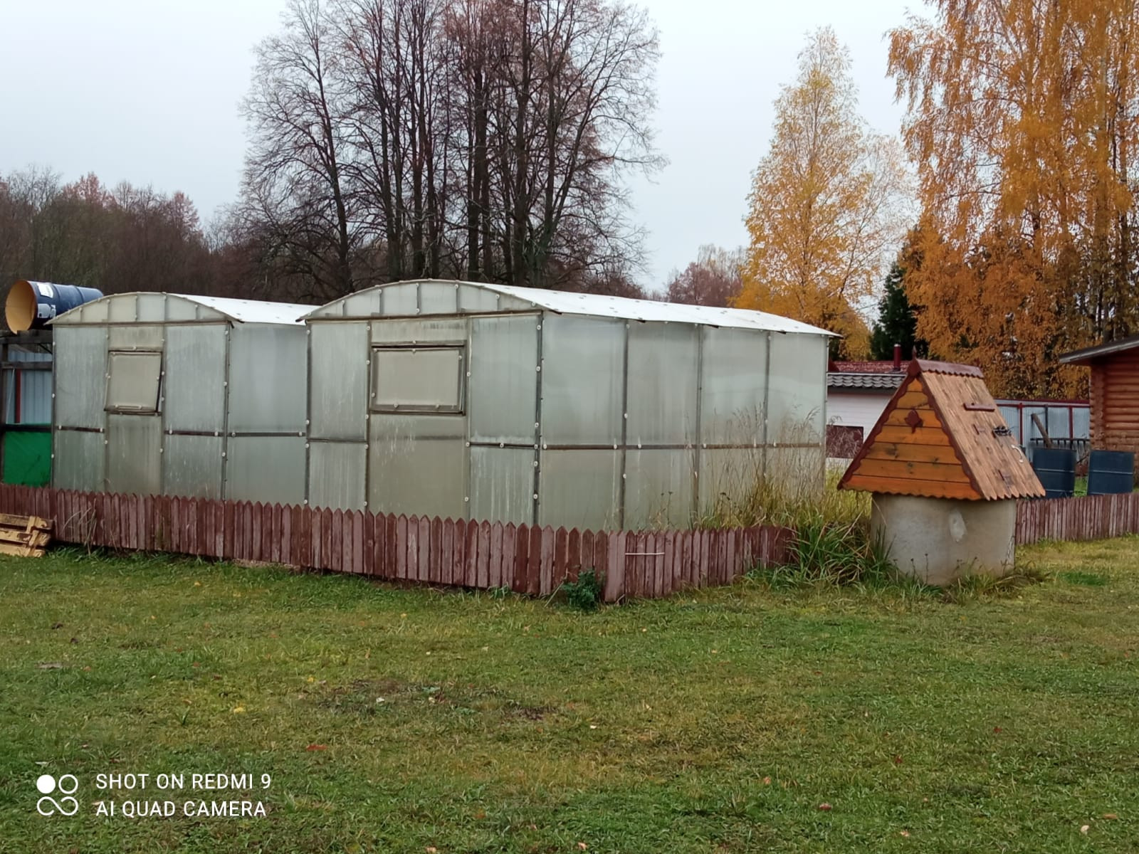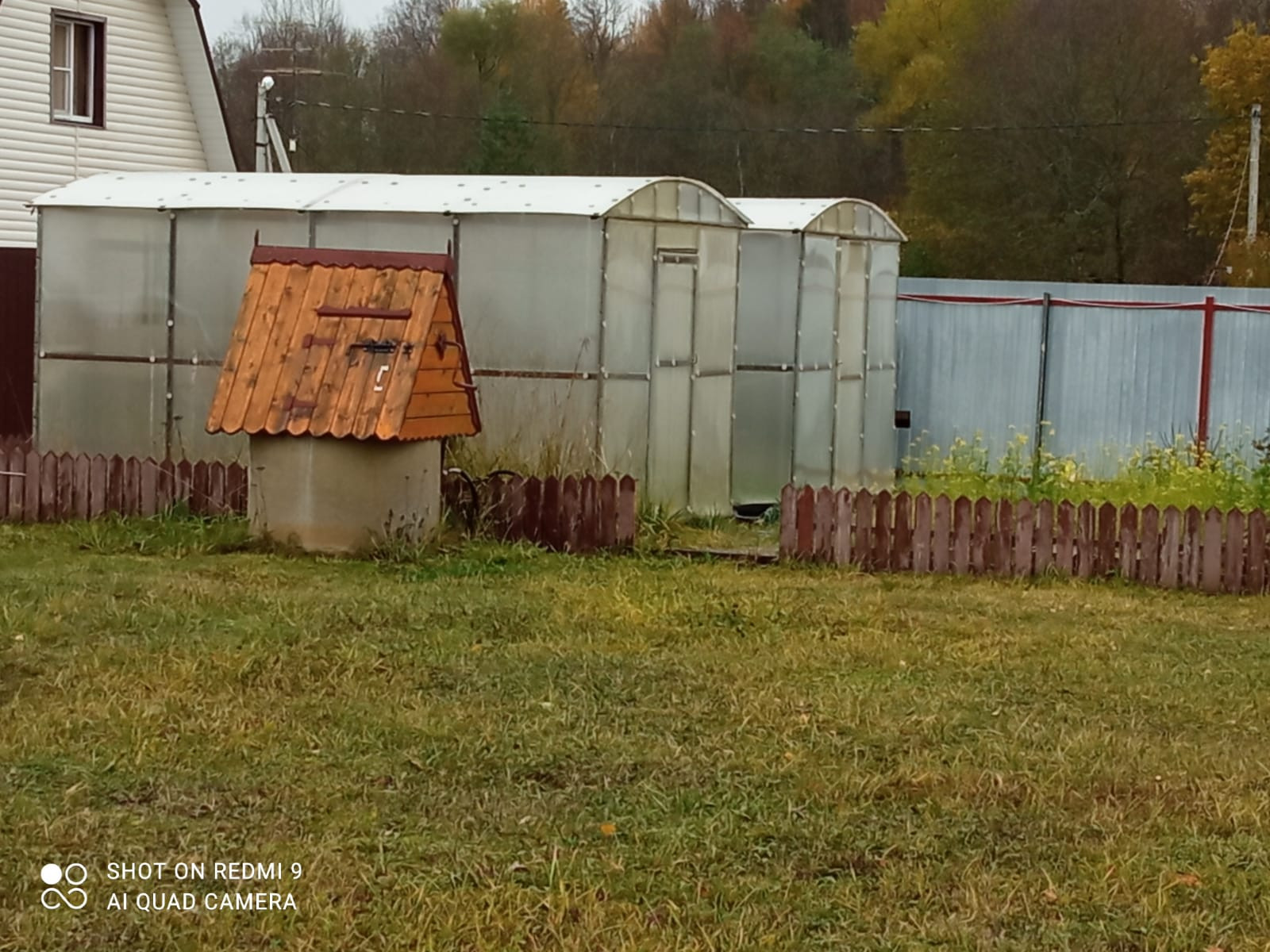 На участке свет, вода - колодец (6 колец), дровница, кованый мангал, летний душ, детский игровой домик, 2 теплицы из поликарбоната, кусты смородины, крыжовника, малины, ежевики, грядки с клубникой.