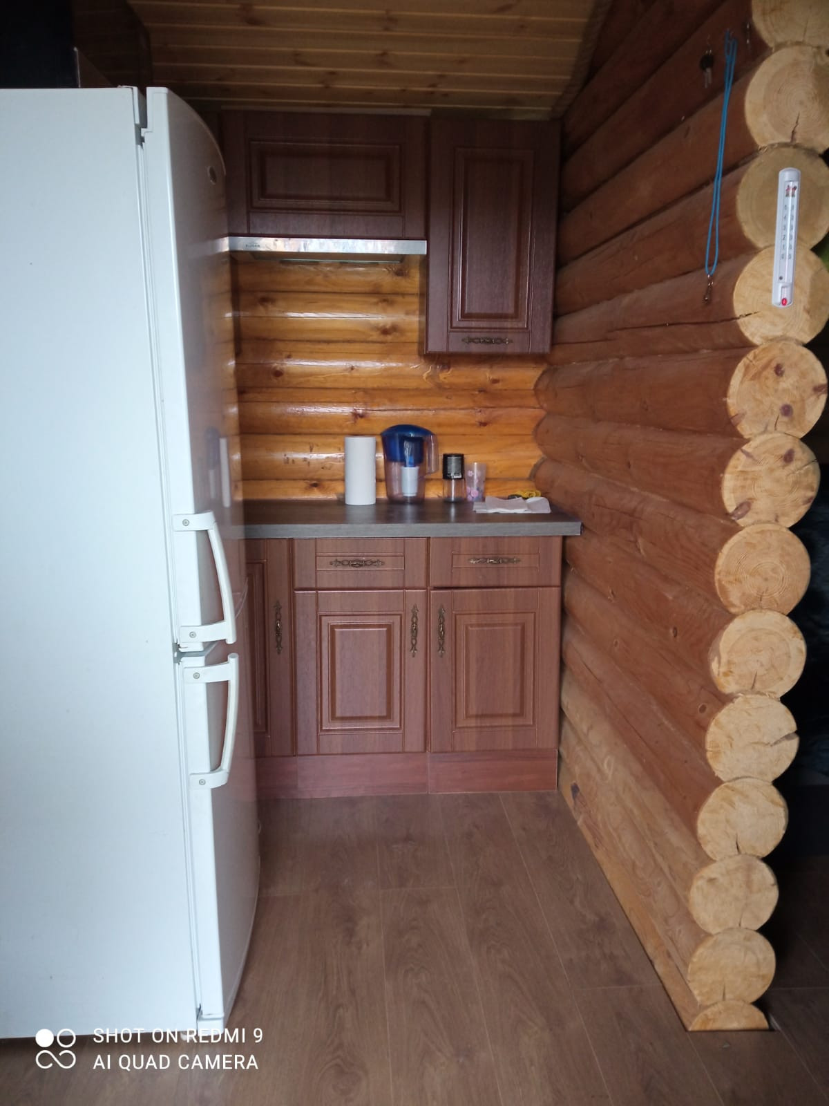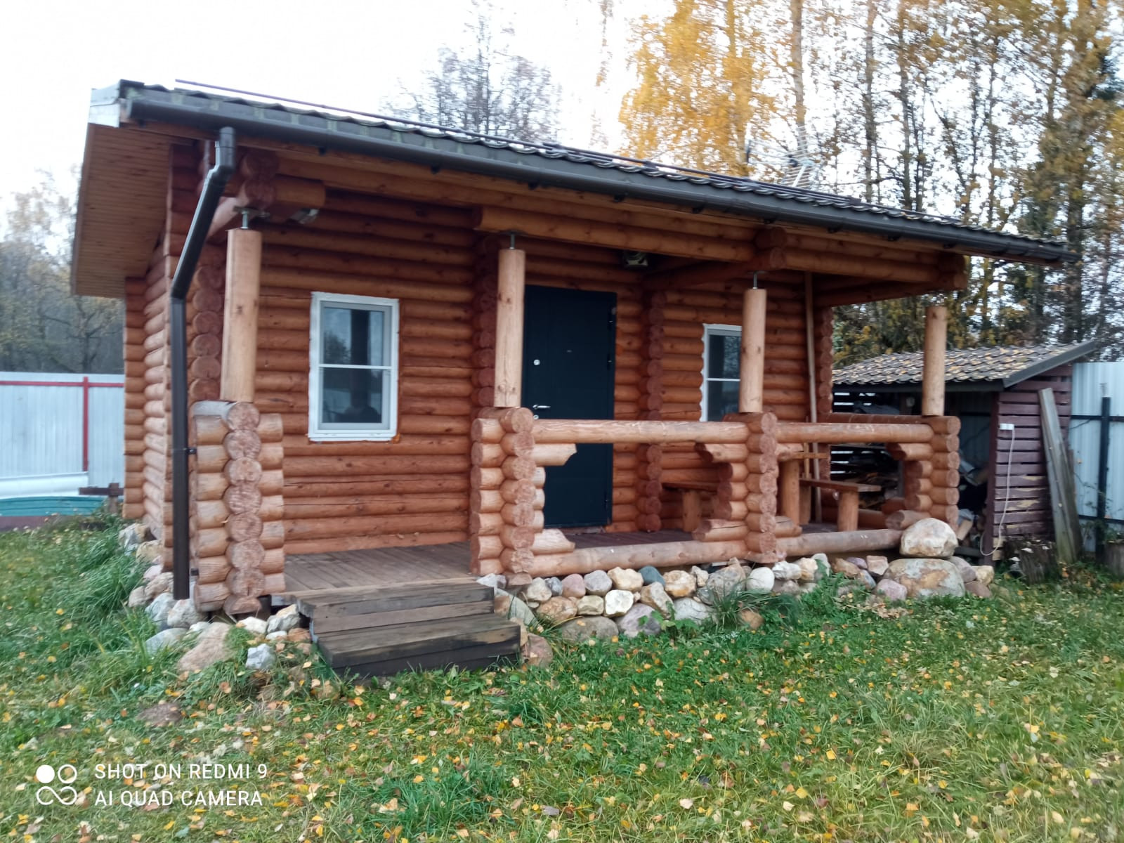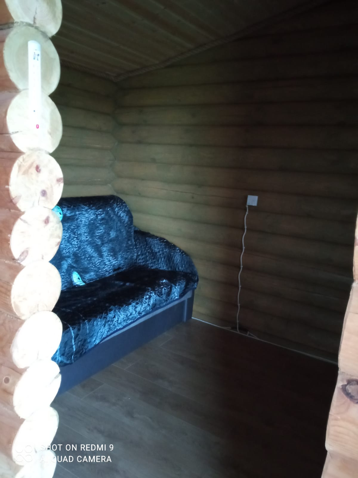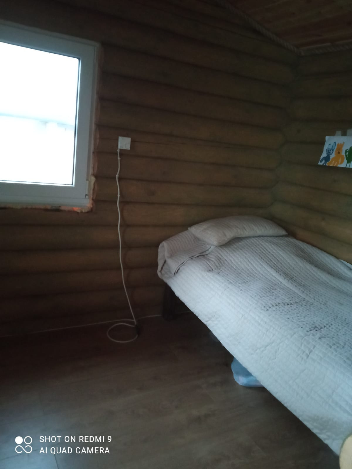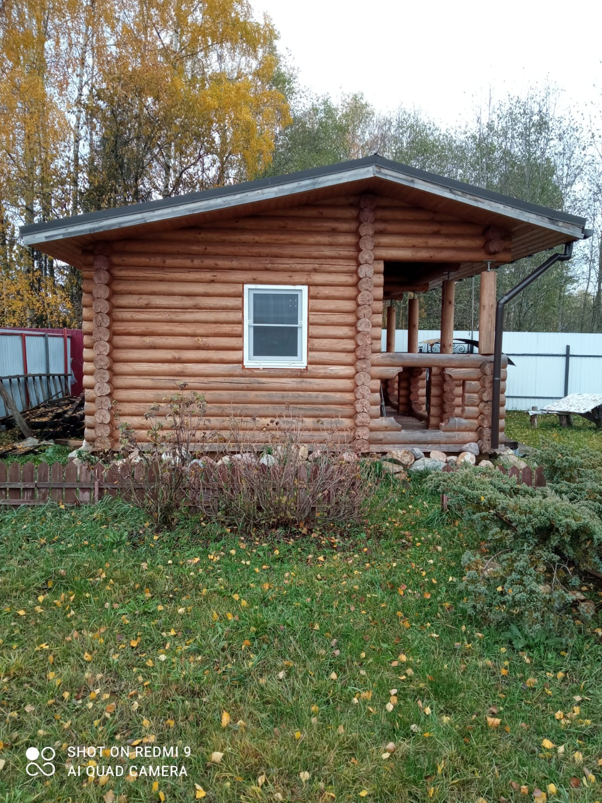 На участке небольшой домик из деревянного сруба 3 х 6 м. Теплый. Две небольшие комнаты и кухня, окна ПВХ, крыша -темно-коричневая металлочерепица, металлическая входная дверь. Утеплен и пол, и потолок. В дом заведено электричество. Отопление электрическими конвекторами. В самые лютые морозы дом протапливался за несколько часов. Зимой ночевали, не замерзли. Планировали строиться, а этот домик использовать как гостевой. При желании можно переделать в баню.