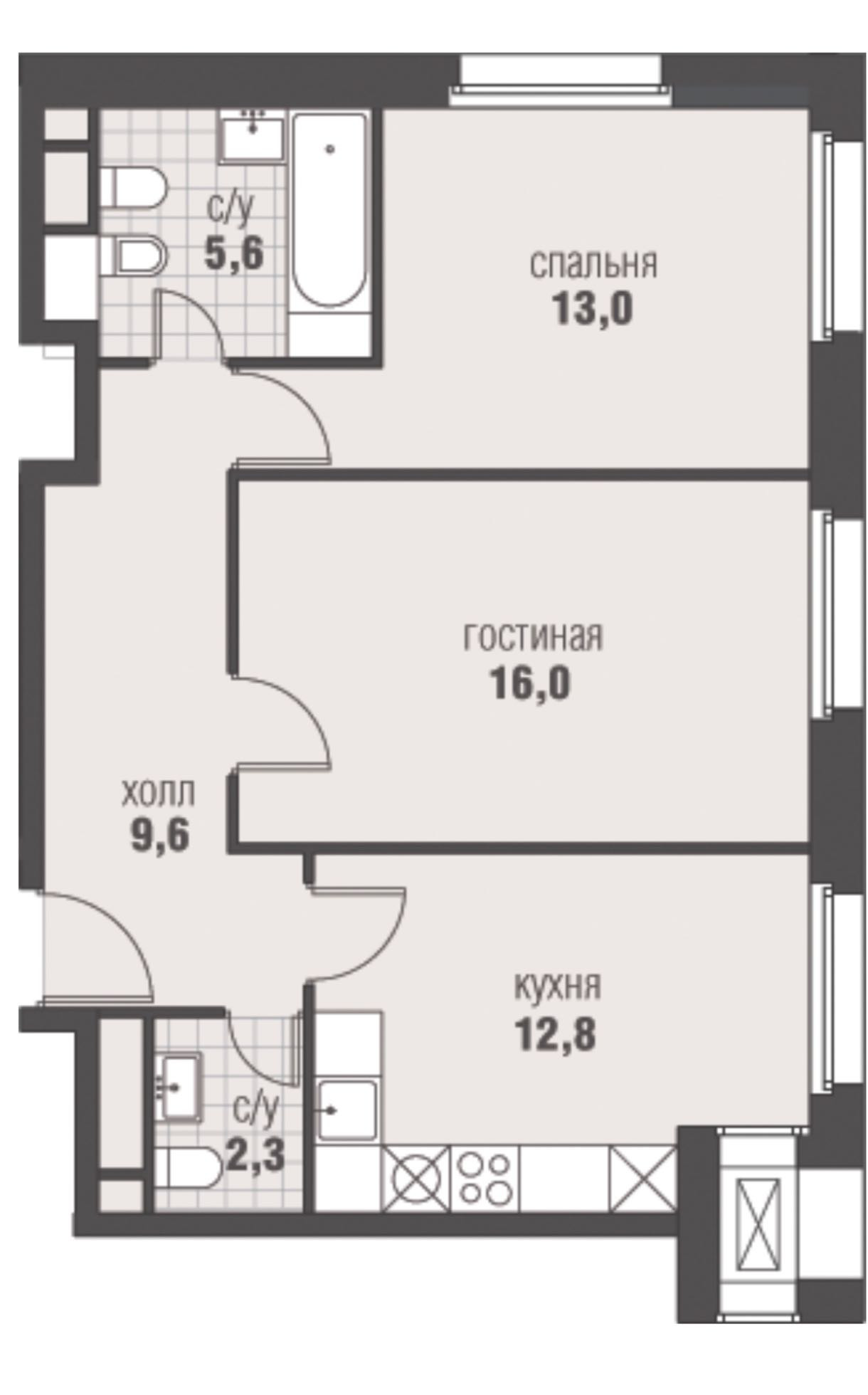 Общая площадь 60 м2