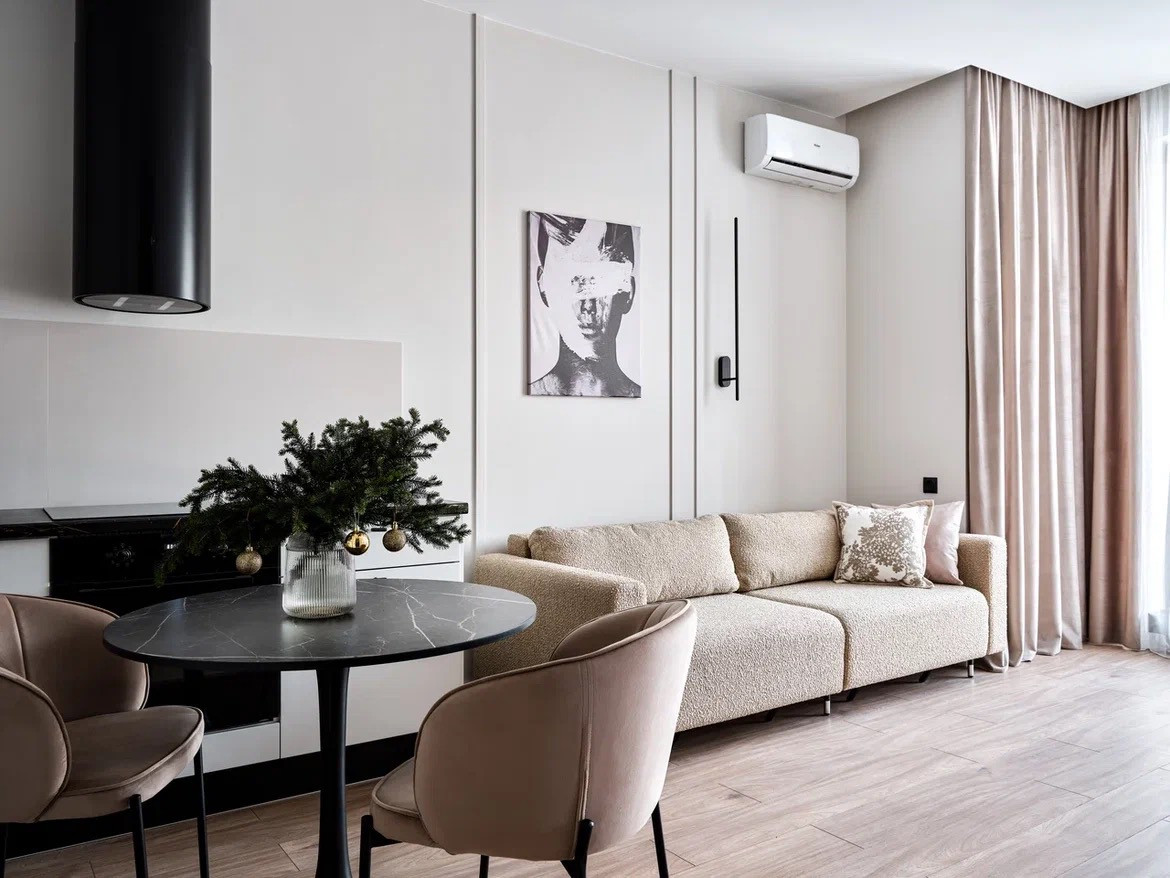 В квартире выполнен в дизайнерский ремонт  под ключ. Функциональная планировка с большой кухней-гостиной и отдельной спальней.