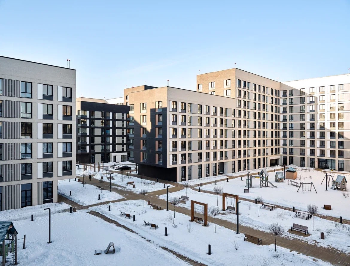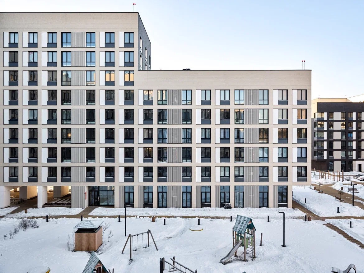 Камерный комплекс из пяти малоэтажных корпусов, закрытая территория, детский сад, школа, пешая доступность от метро.