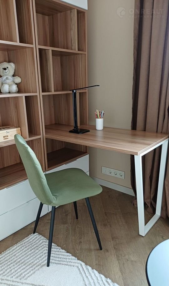 Во второй комнате - односпальная кровать и функциональная рабочая зона;
