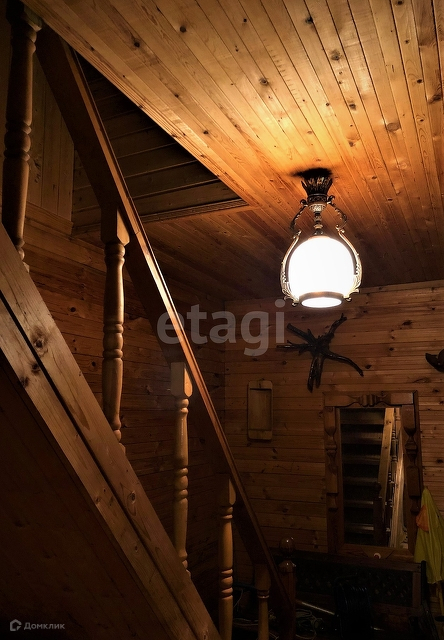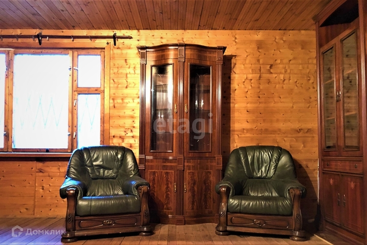 Высота потолков первого этажа 2,55 м, второго 2,25 м. Стены обшиты вагонкой. Окна с деревянными стеклопакетами. Во дворе собственная скважина. Свет заведен в дом, номинальная мощность 15 кВт. Септик необходимо монтировать. К участку подведен газ.