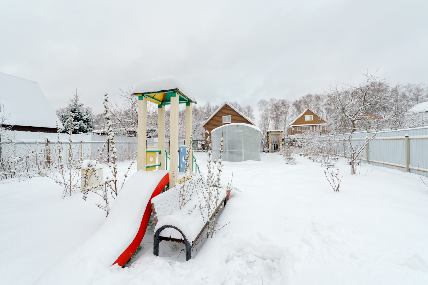Участок площадью 8 соток полностью облагорожен. На участке расположен капитальный курятник, вольер, теплица с тёплыми грядками. Все это построено 2021 г. Более 15 молодых, но уже плодоносных кустарника (чёрная, белая, красная смородина, несколько сортов крыжовника). Две яблони, слива, вишня. По периметру участка кусты малины и ежевики (калиброванные дорогие сорта). На участок завезено очень много чернозема. На передней клумбе расположен красивый розарий.