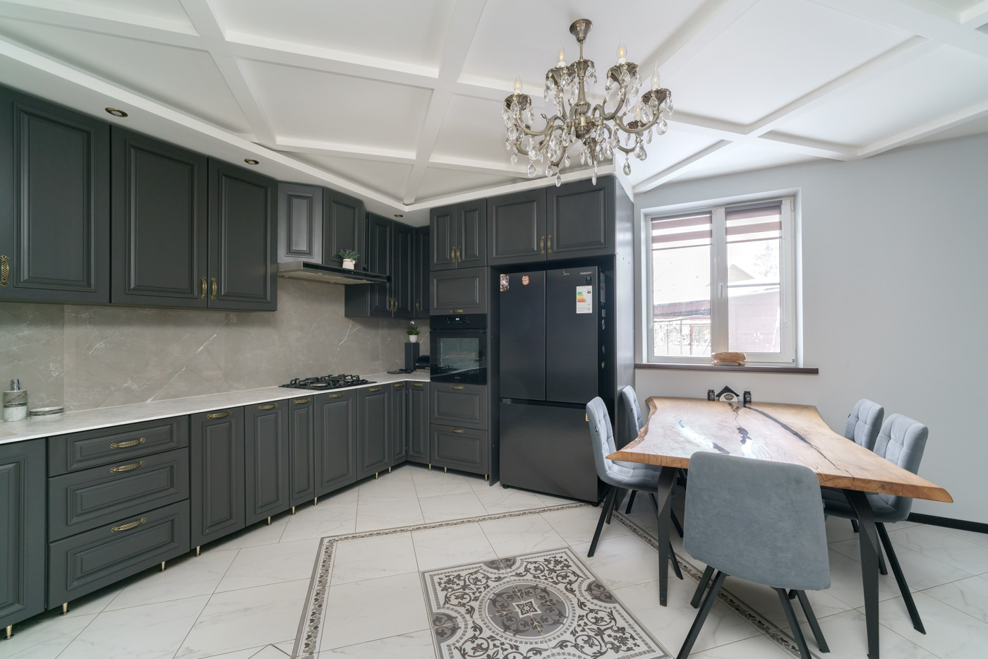 В доме остаётся вся мебель, включая камин и встроенную технику. Мебель выполнена из качественных материалов по индивидуальным проектам. Кухонный гарнитур, стоимостью 1,5 млн рублей выполнен из массива бука, включая и корпус кухни. Столешница на кухне и в санузле-искусственный камень. Дорогая кухонная техника и сантехника практически не была в использовании.