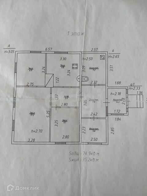 Общая площадь 74.9 м2