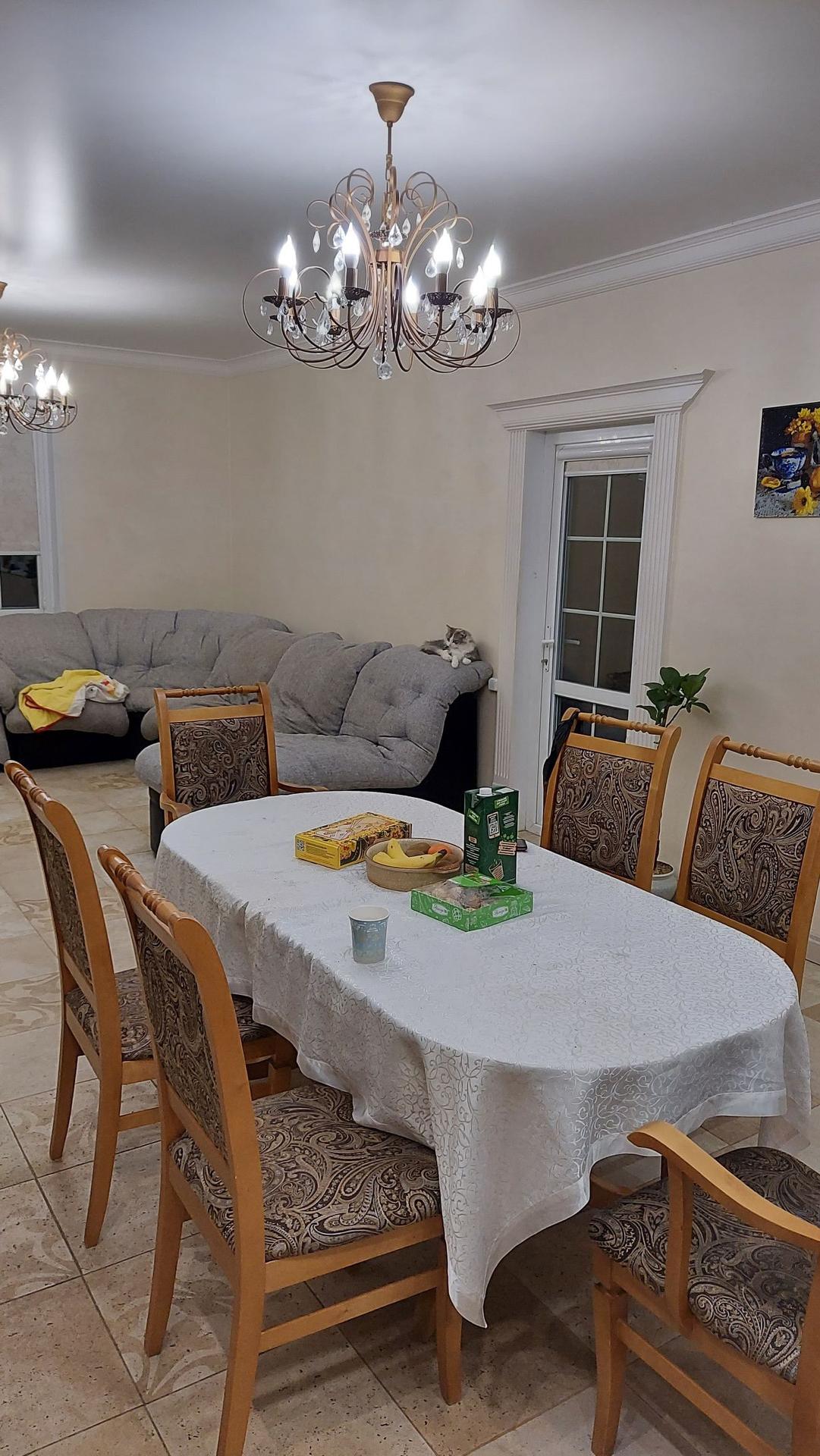 Первый этаж: Большая светлая гостиная 35 кв/м (вся кухонная техника, мебель и люстры остаются), бойлерная 10 кв/м, ванная комната 4кв/м, холодная комната для хранения продуктов с ямой, спальная комната (кабинет) 11,5 кв/м.
