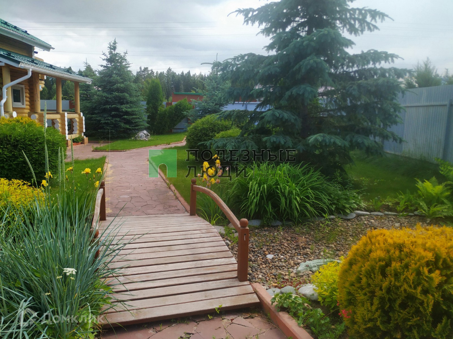 Территория огорожена капитальным забором из профнастила, на территории выполнен ландшафтный дизайн.