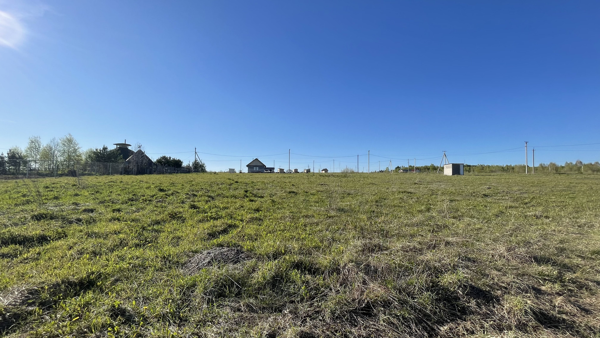 Столбы электропередачи установлены через дорогу у соседних участков. Соседи живут круглый год. Деревня газифицирована.