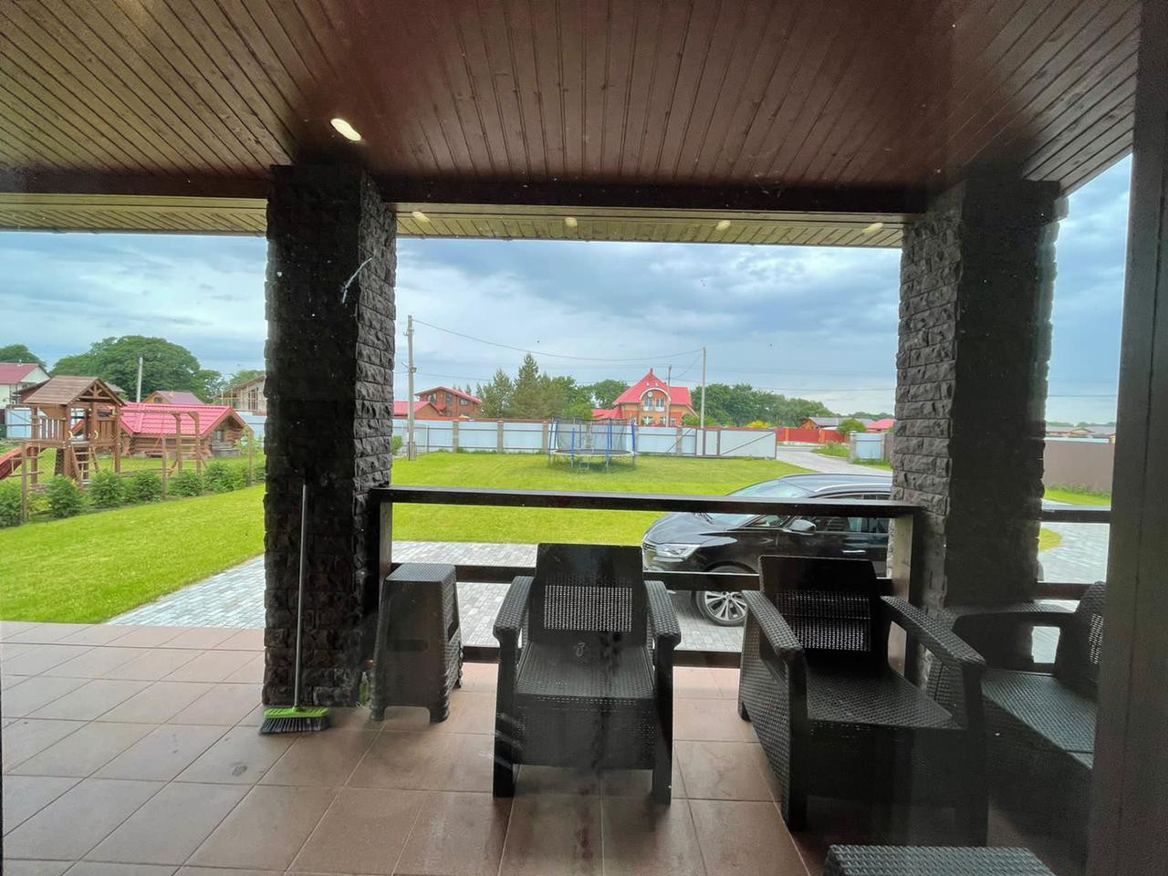 Участок облагорожен, засеян футбольным газоном.