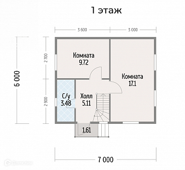 Дом два этажа. Первый этаж: холл, гостиная, спальня, санузел