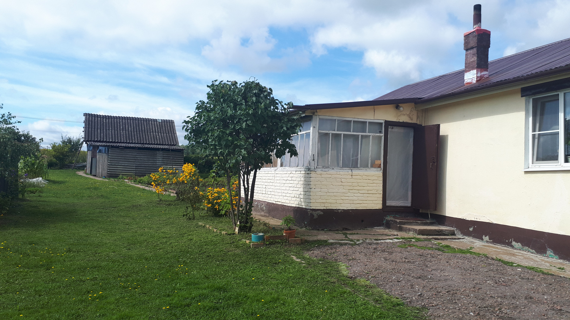 Помимо дома на участке имеются хозпостройки для хранения садового инвентаря и содержания домашней птицы.