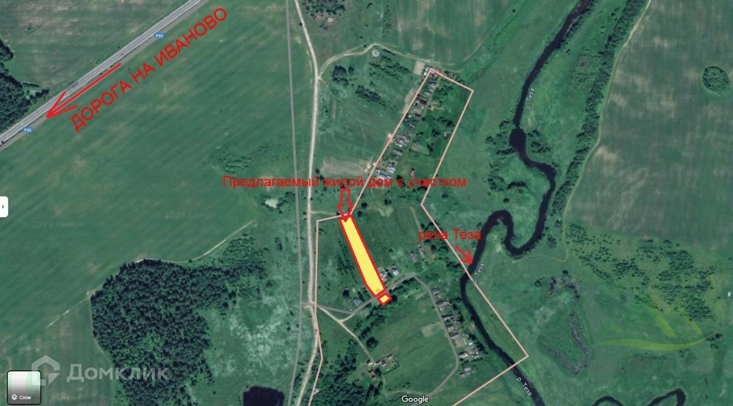 Шикарное тихое место в экологически чистом районе с потрясающими пейзажами!!! Собственный пруд перед Вашим домом, до реки Теза 200 м., рядом грибные места, охота, рыбалка!