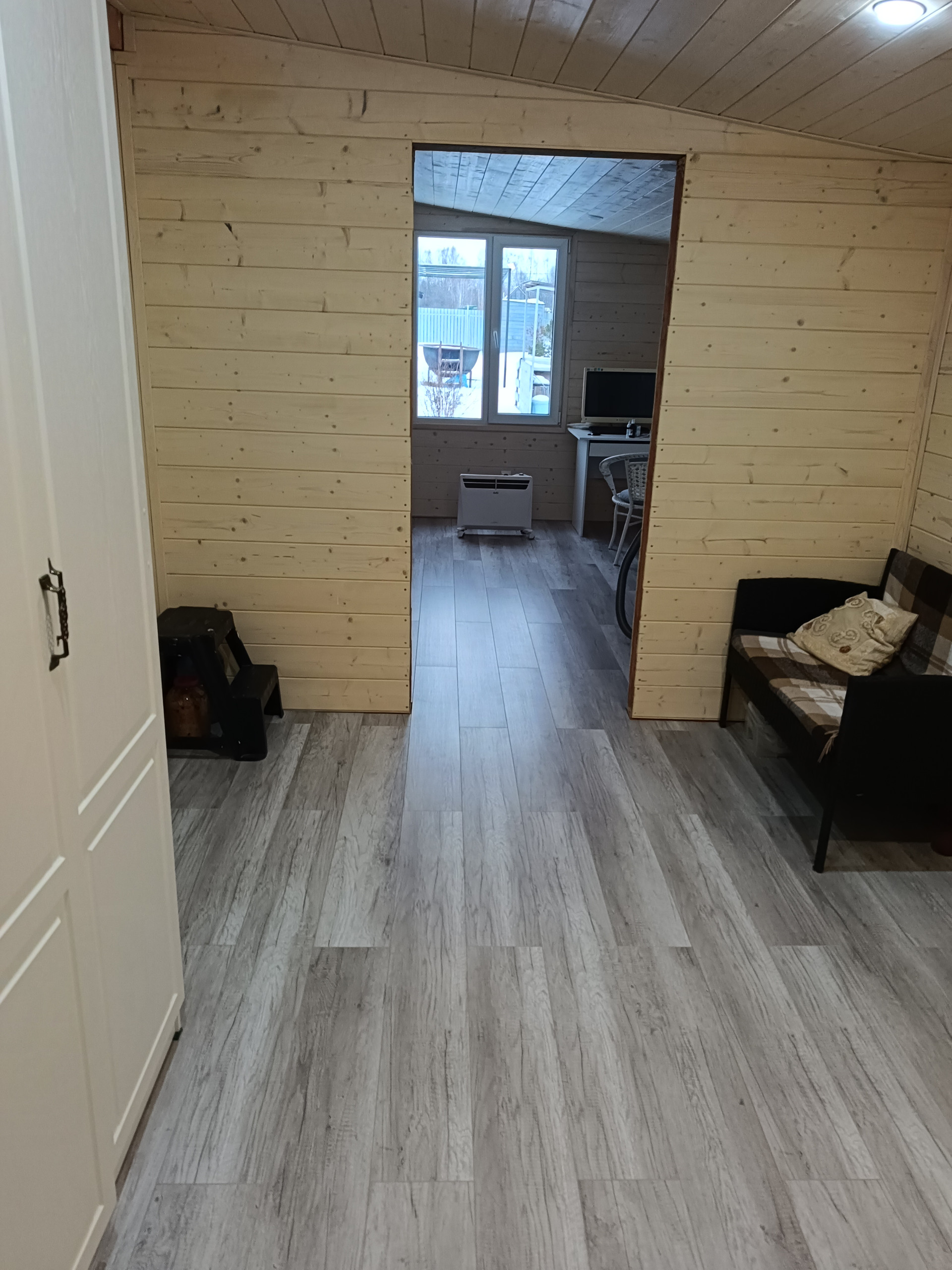 Фундамент свайно-винтовой. Дом каркасный : доска (иммитация бруса)с обоих сторон, утеплен