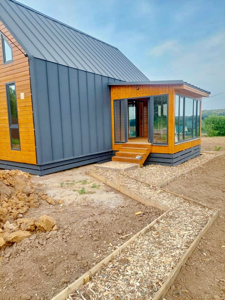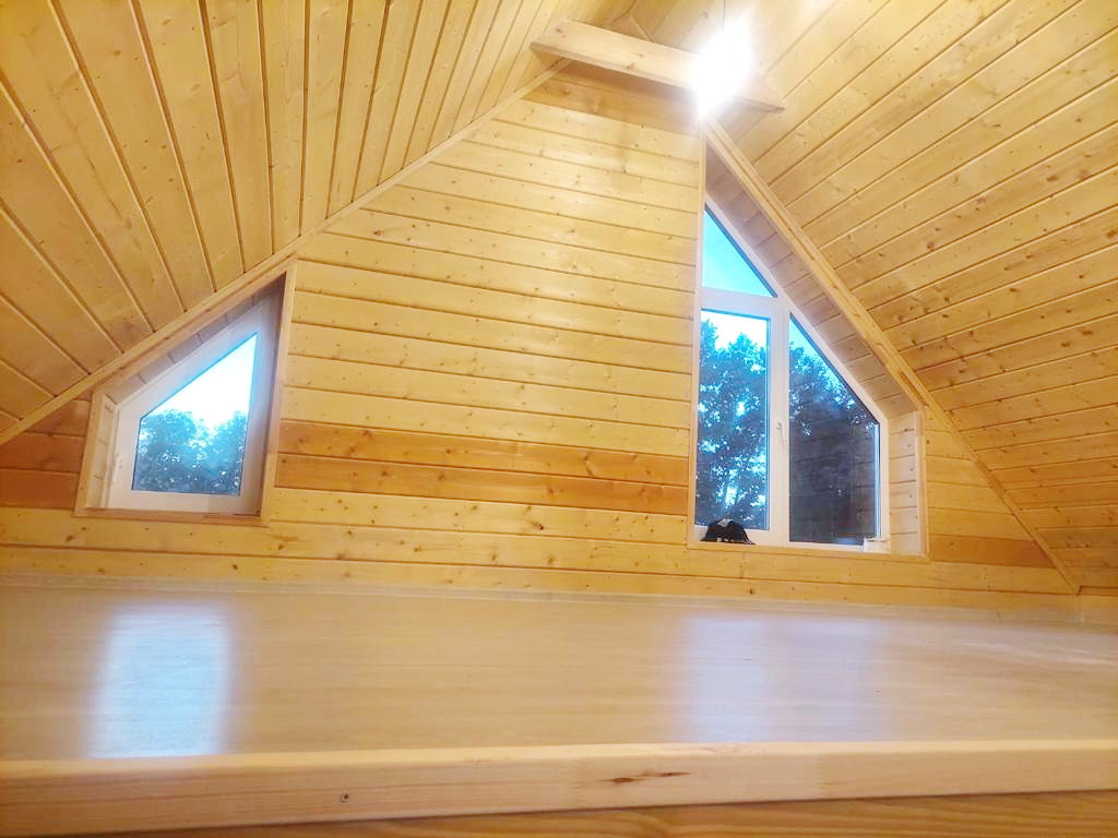 По планировке при входе теплая терраса, далее кухня-гостиная со вторым светом и красивым видом, а также выходом на участок, изолированная спальня, совмещенный санузел и мансардная открытая спальня на втором этаже.