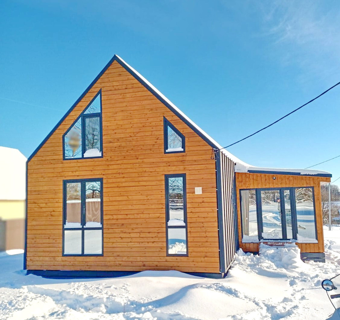 Дом построен по каркасной технологии в стиле Барнхаус, утепление не 150 или 200 а целых 250мм по всему периметру, что обеспечит вас минимальным расходом на отопление в зимнее время.