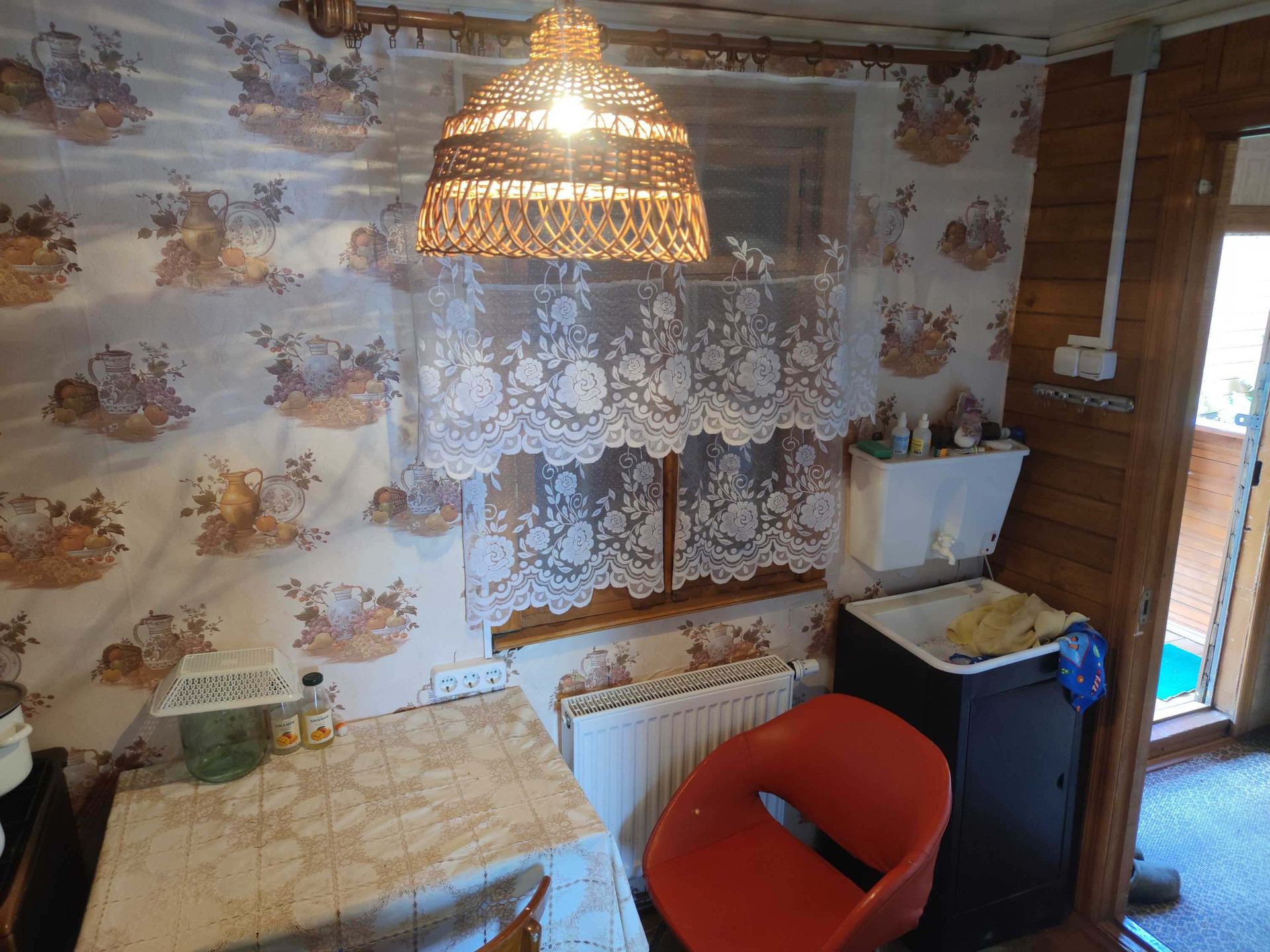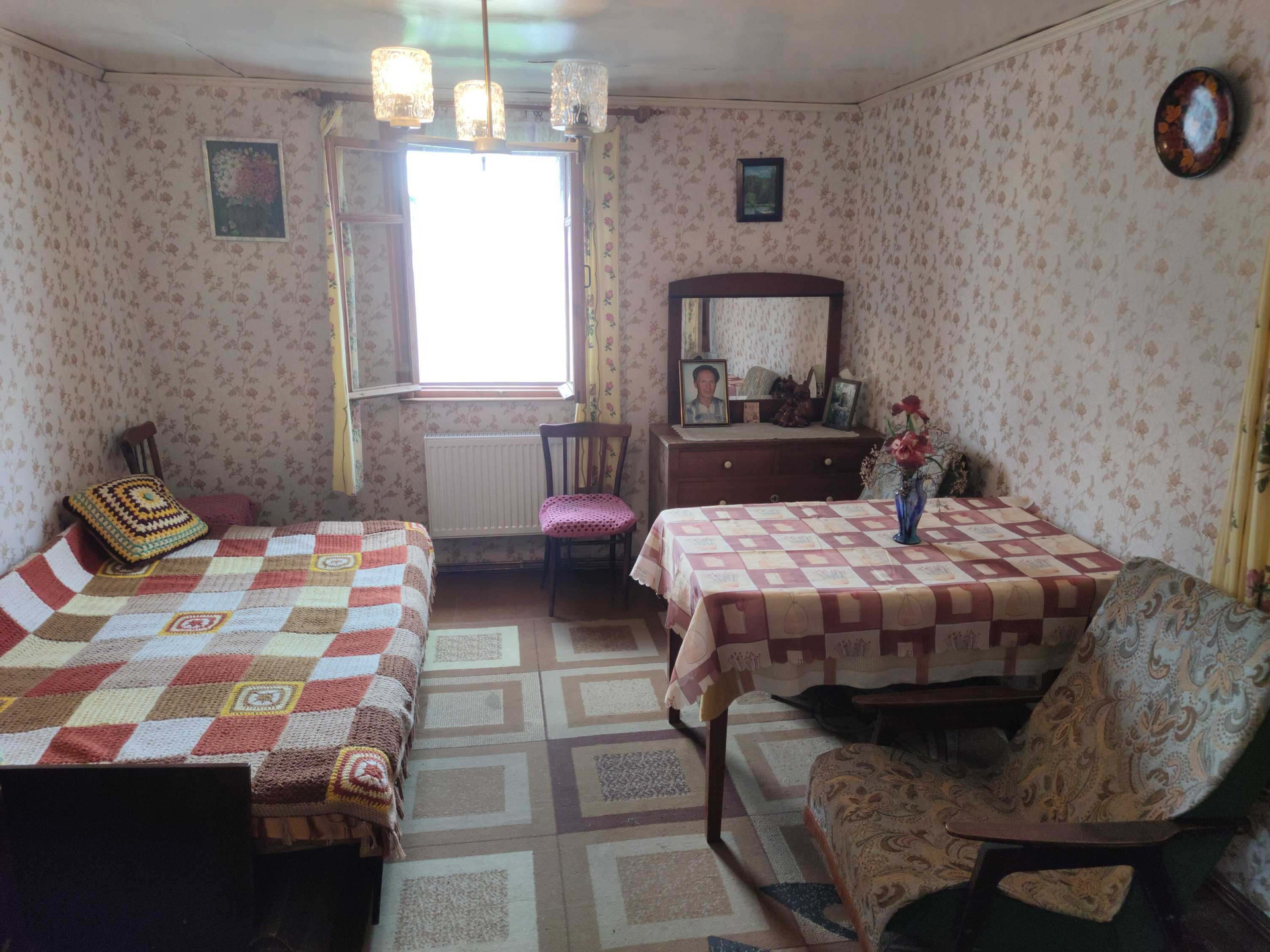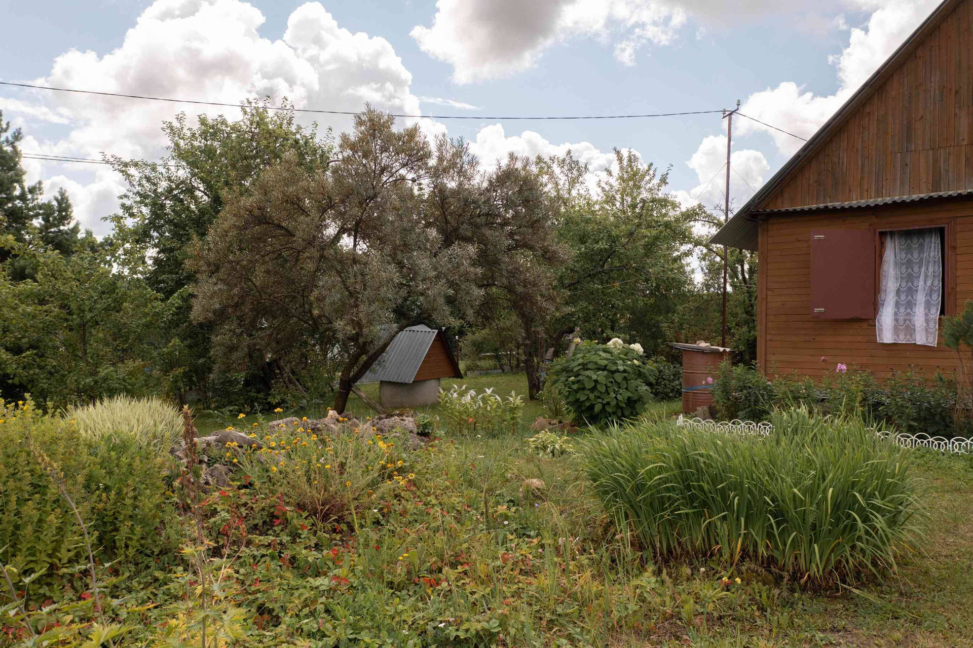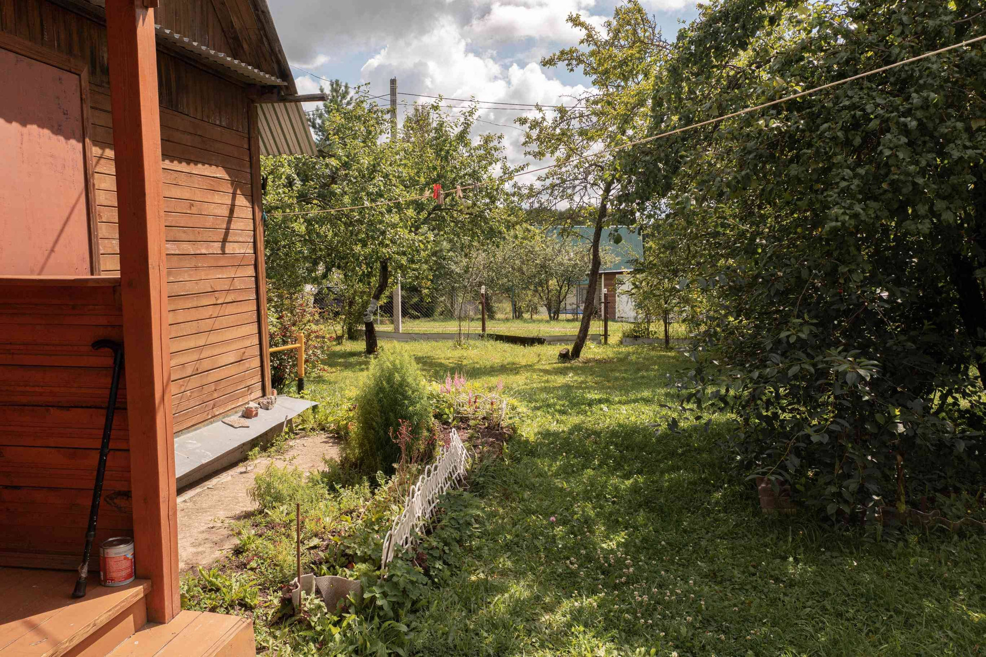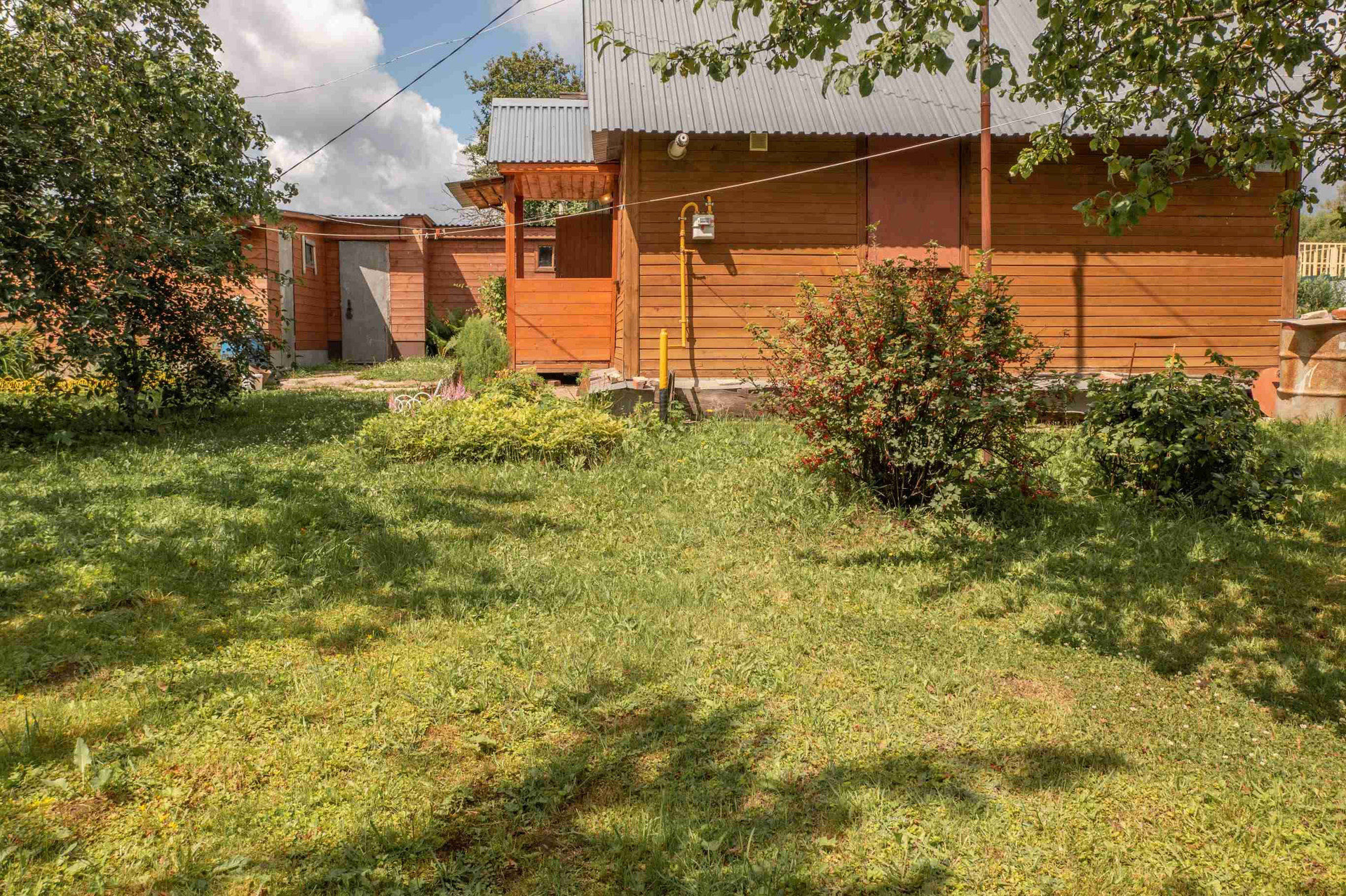 Сам дом имеет размеры 6 на 6 метров и был построен с использованием каркасной технологии, что гарантирует его прочность и долговечность. Оснащен газовым отоплением, он обеспечит комфортное проживание на протяжении всего года. На этом участке открывается потрясающий вид на луга и отдаленный лес, заставляющий забыть о повседневных проблемах и насладиться природой.