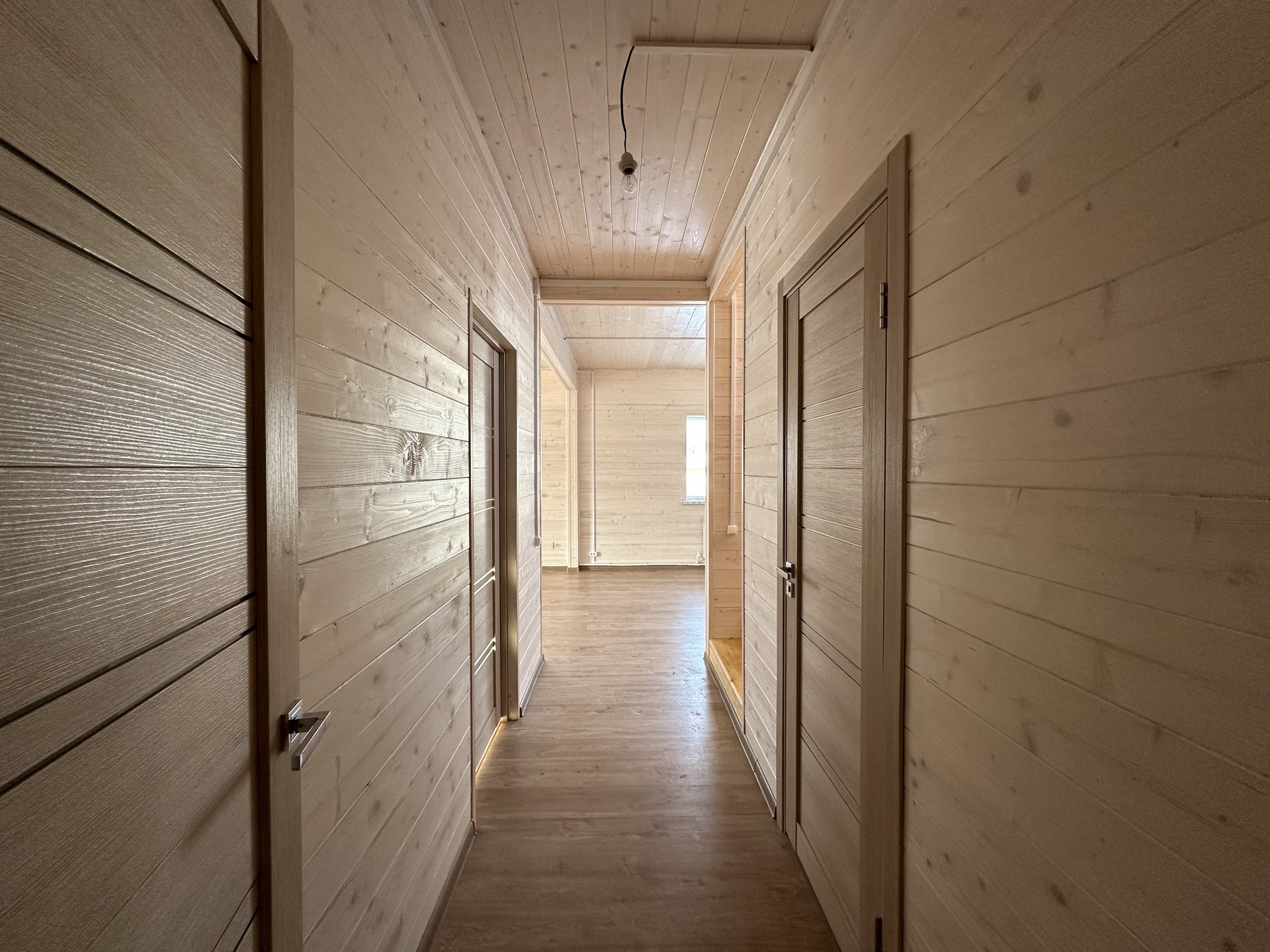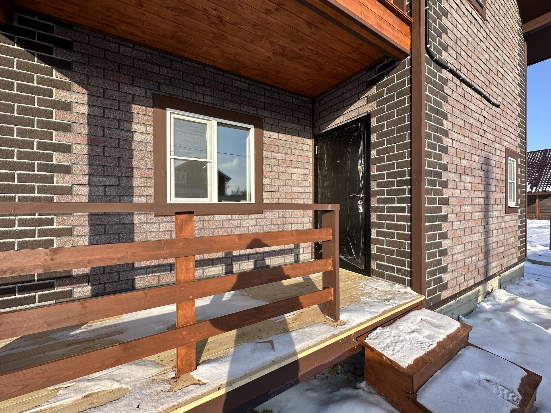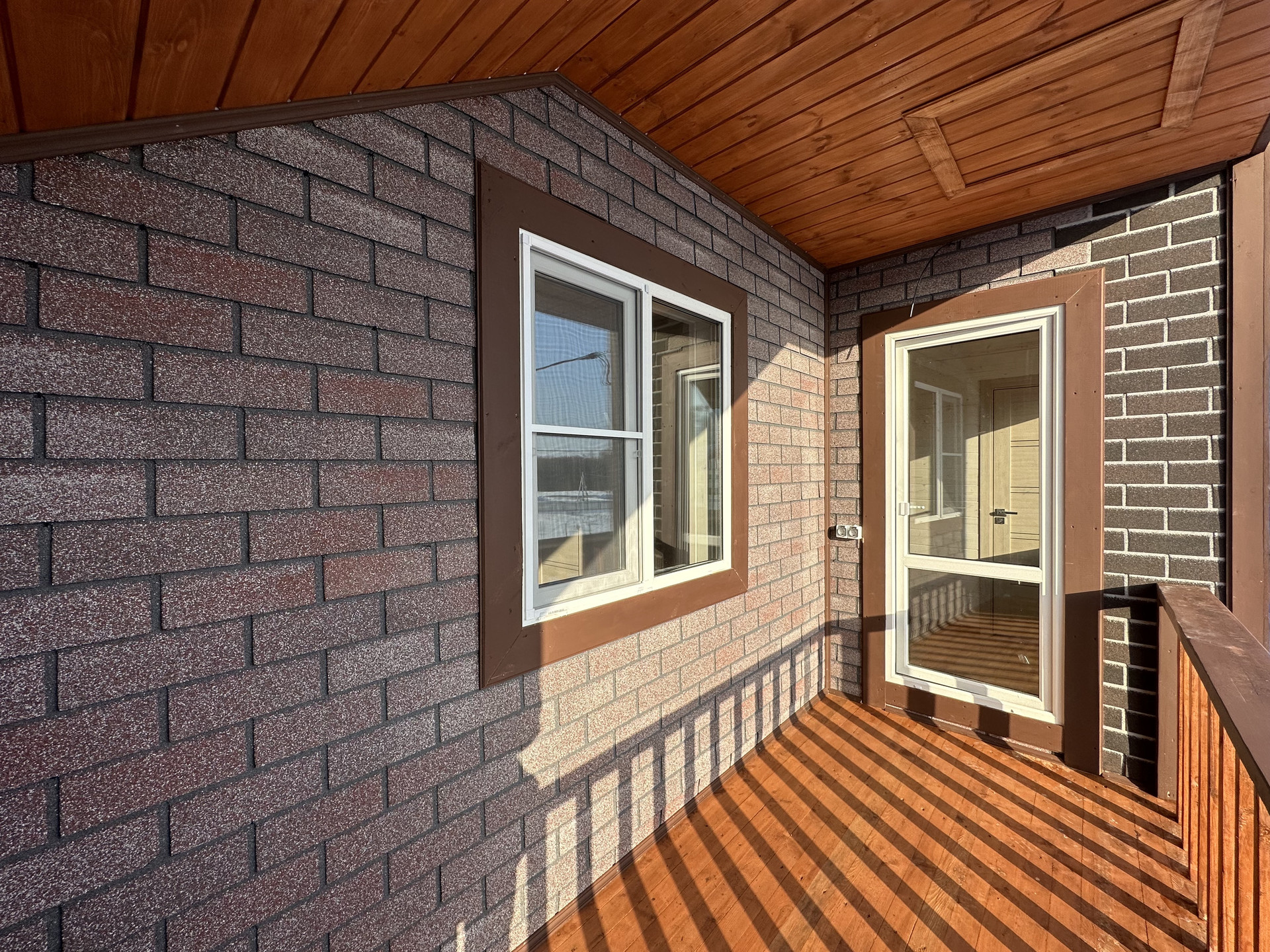 Общая площадь - 165 кв.м. Фундамент – ленточный, армированный. Материал стен - брус сечением - 150х100 с утеплением 100 мм; Внешняя отделка - ОСБ панели + фасадная плитка «Хауберк»; Внутренняя отделка - обработанная и покрашенная имитация бруса; Окна - двухкамерные стеклопакеты; Кровля - металлочерепица с утеплением 150 мм; Полы - ламинат.