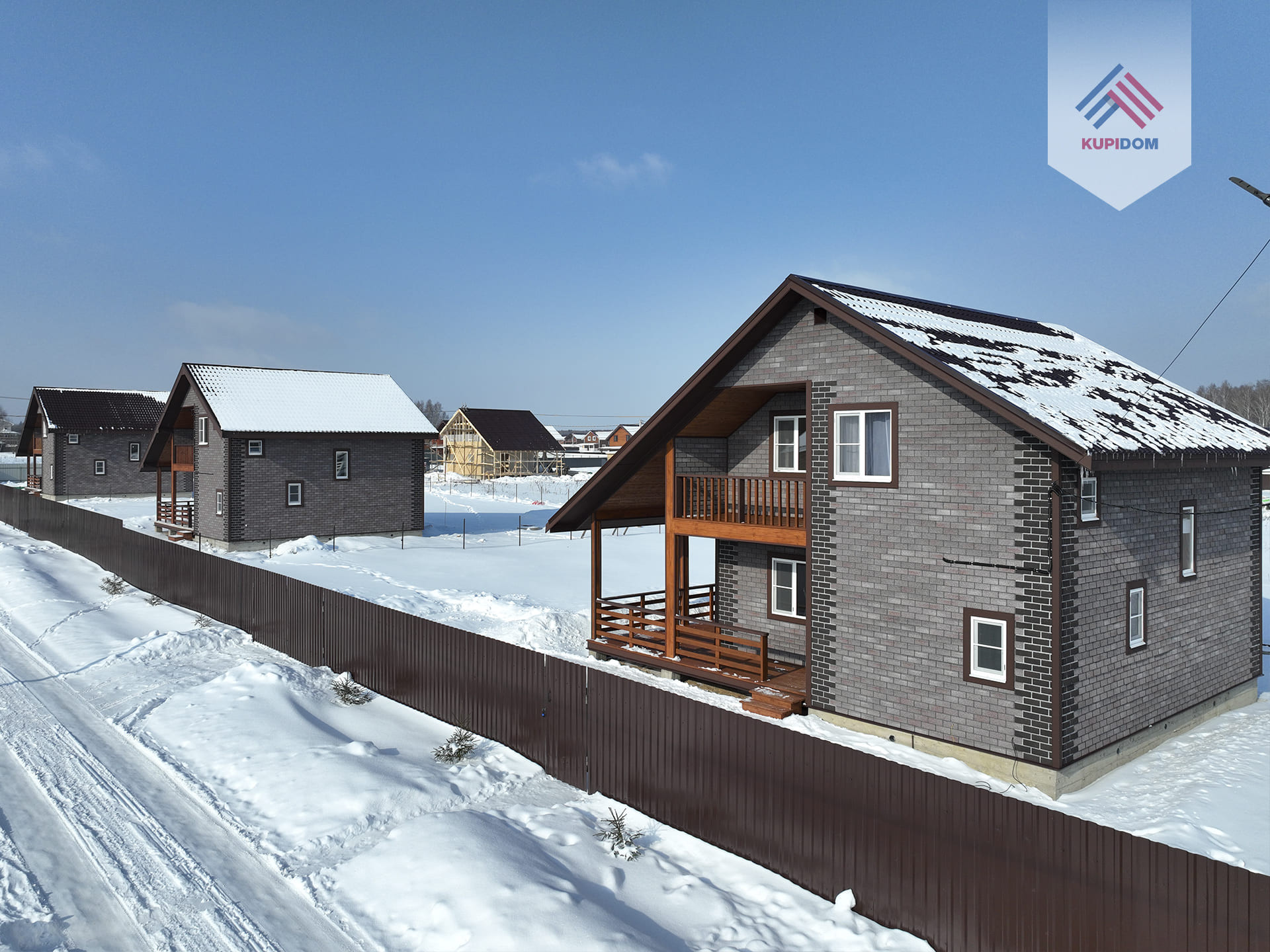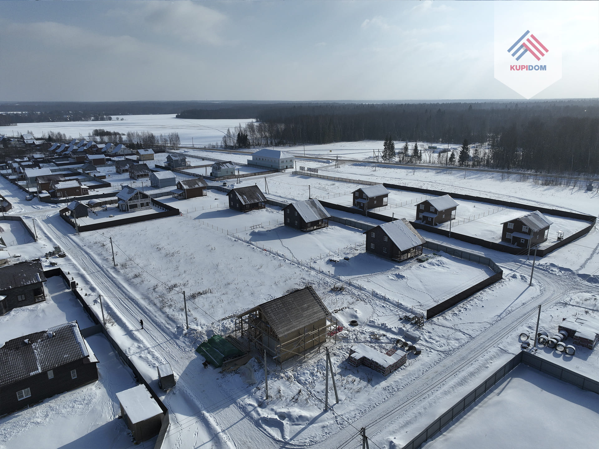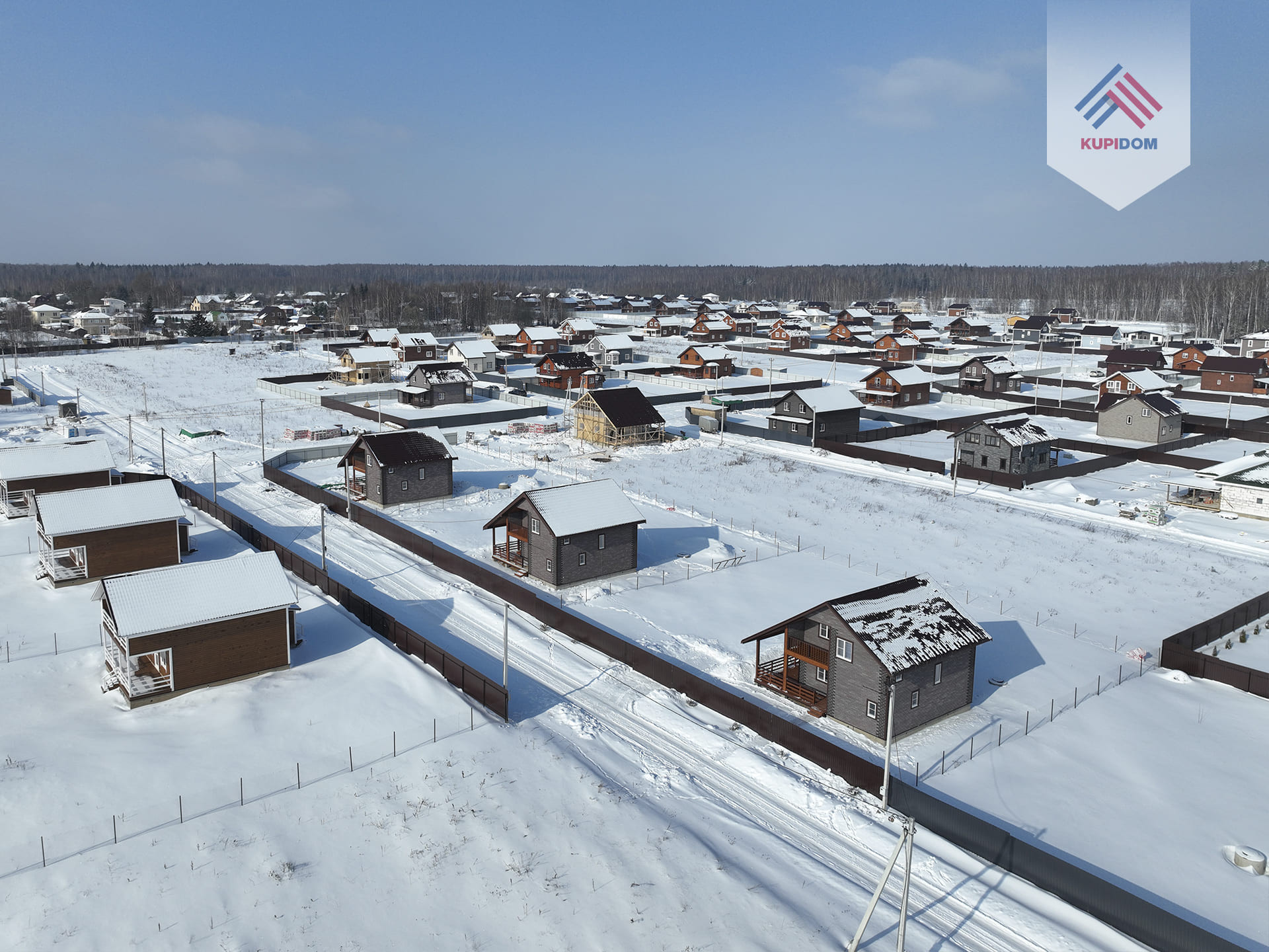 Удобный круглогодичный подъезд, асфальтированная подъездная дорога от шоссе до поселка.