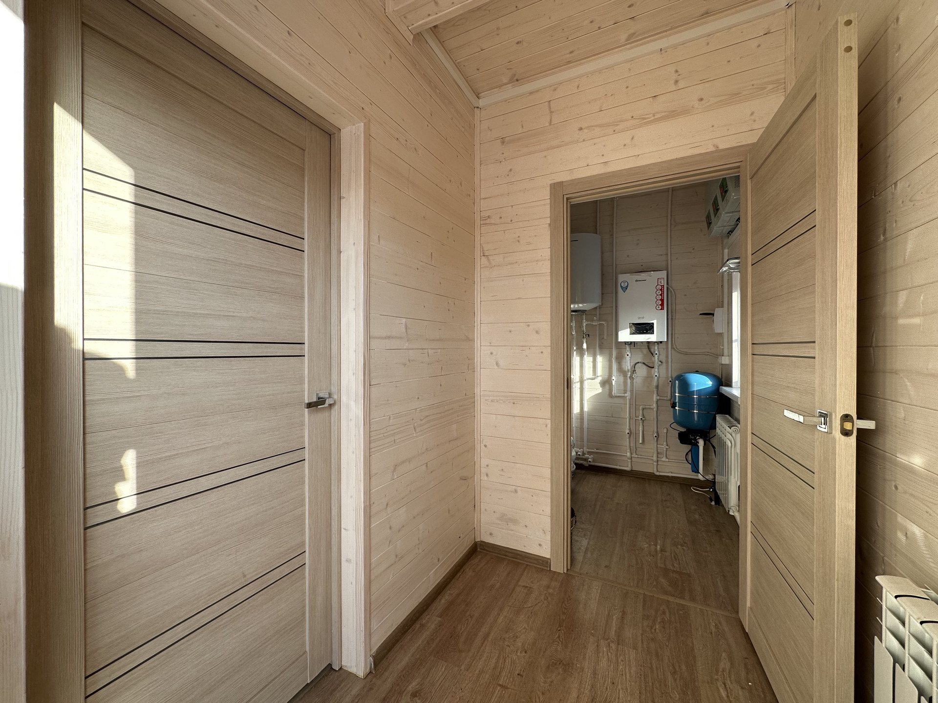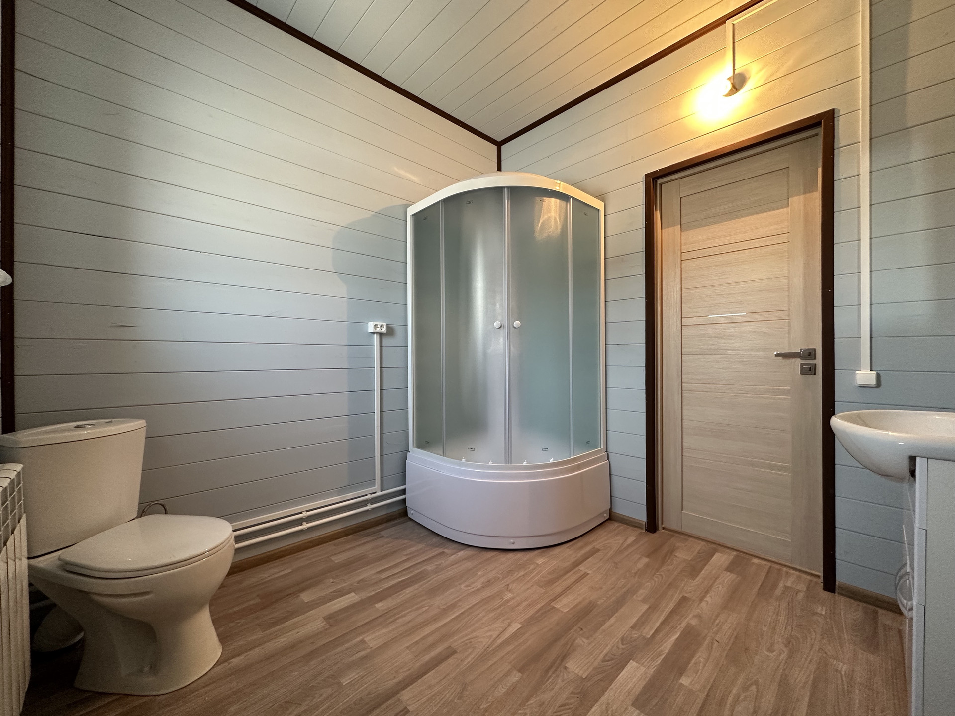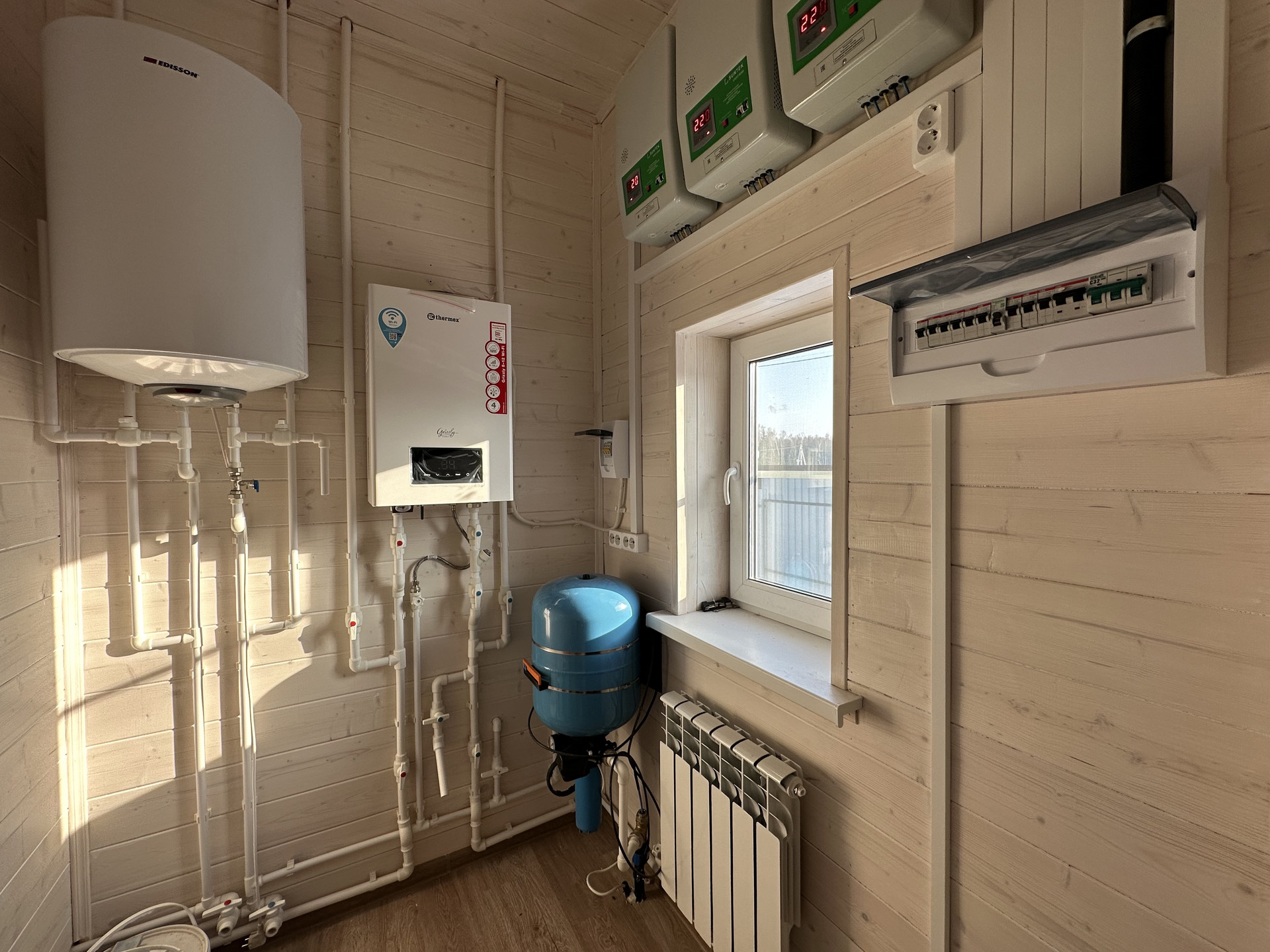 Электричество - 15 кВт, 380; Водоснабжение - свой колодец на участке; Канализация - септик; Установлена сантехника в двух с/у; Отопление - электрокотел, с функцией удаленного управления, по дому разведены батареи с антифризом; Интернет - оптоволокно.
