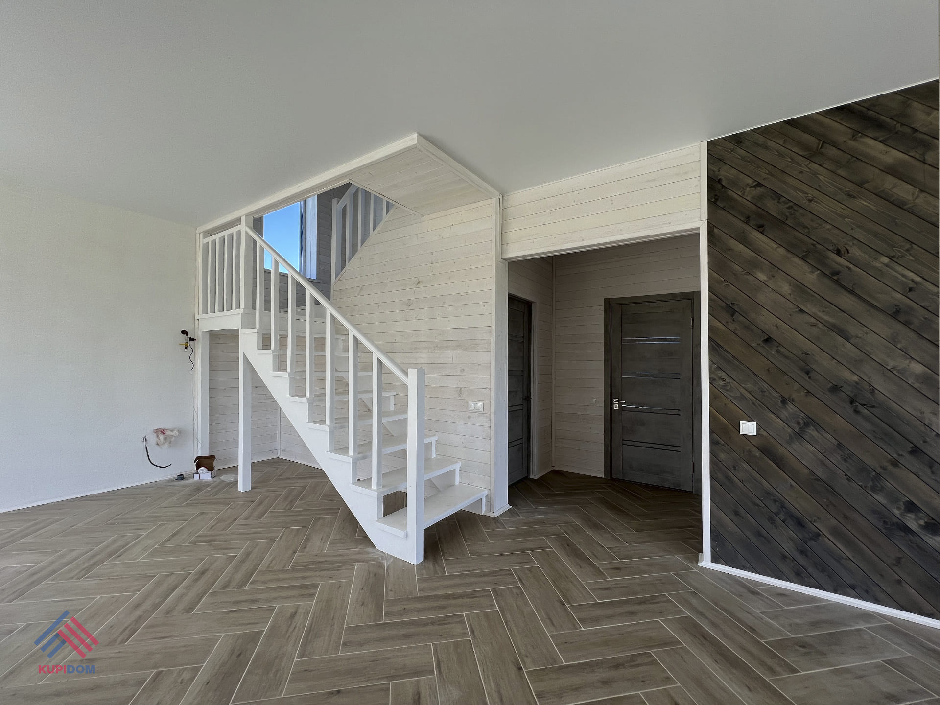1 этаж: крыльцо, прихожая, котельная, кухня - гостиная, сан.узел, комната.