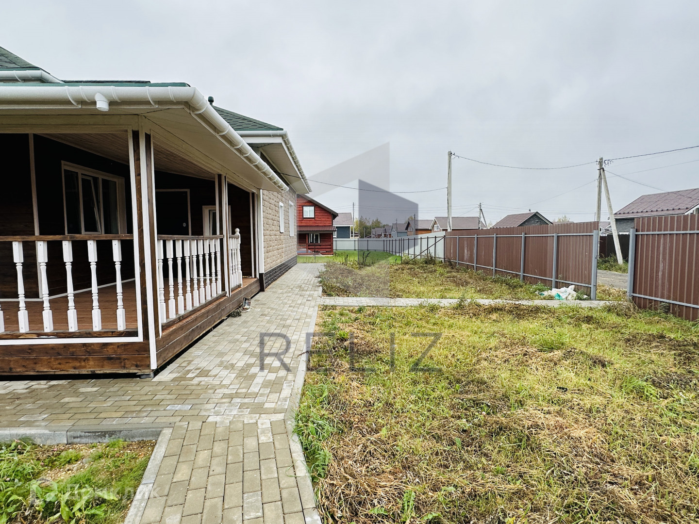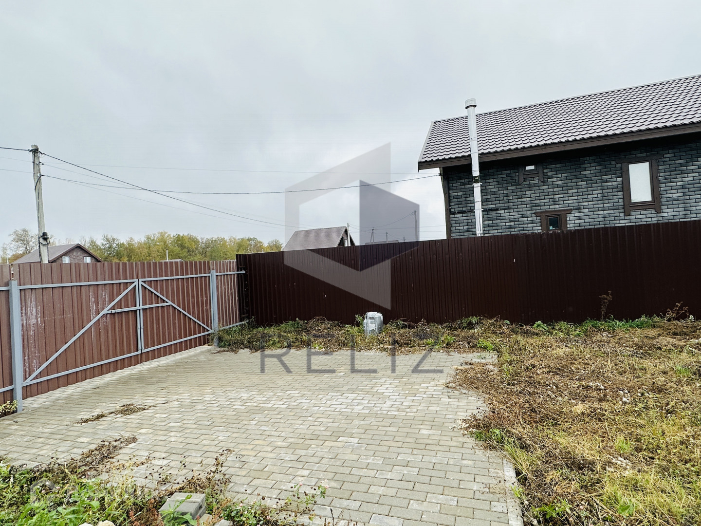 - Есть калитка, ворота для въезда и место для стоянки машины(выложено плиткой)