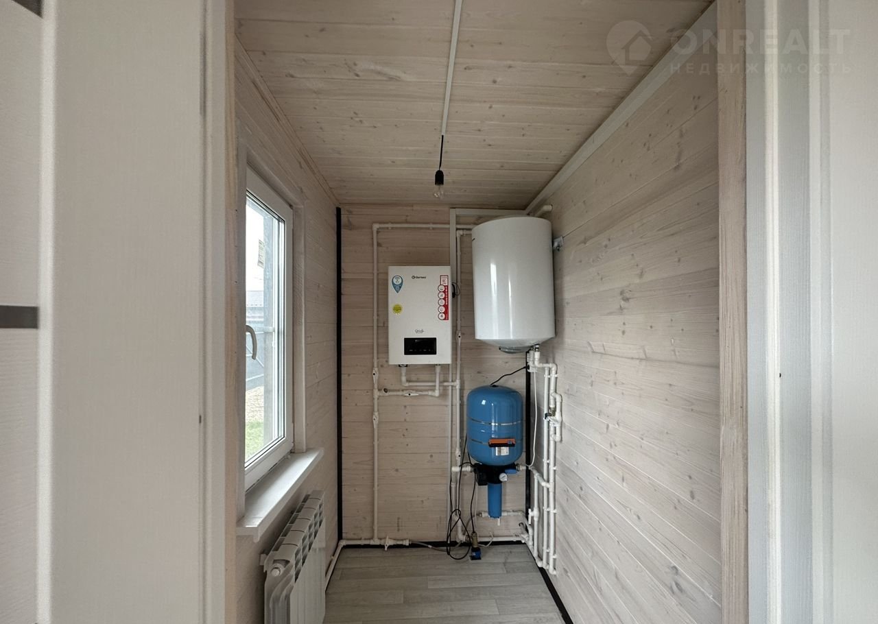 Планировка: на 1-ом этаже: крыльцо, бойлерная, коридор, санузел с сантехникой, кухня-гостиная с выходом на большую террасу, спальня. На 2-м этаже: холл, 3 спальни, балкон и санузел ( сантехника установлена) .