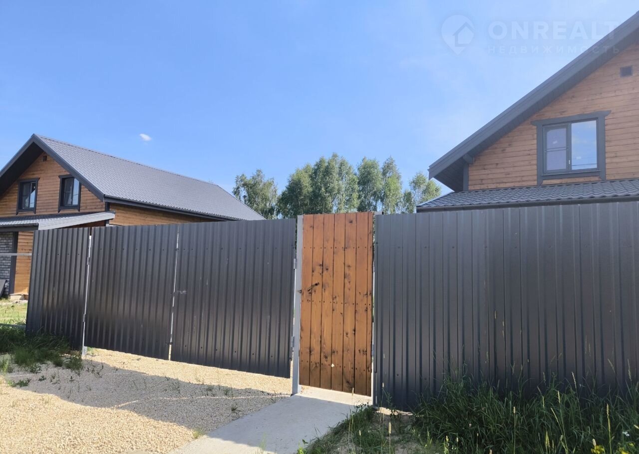 Участок полностью огорожен, есть калитка и ворота для заезда авто, бетонная дорожка.