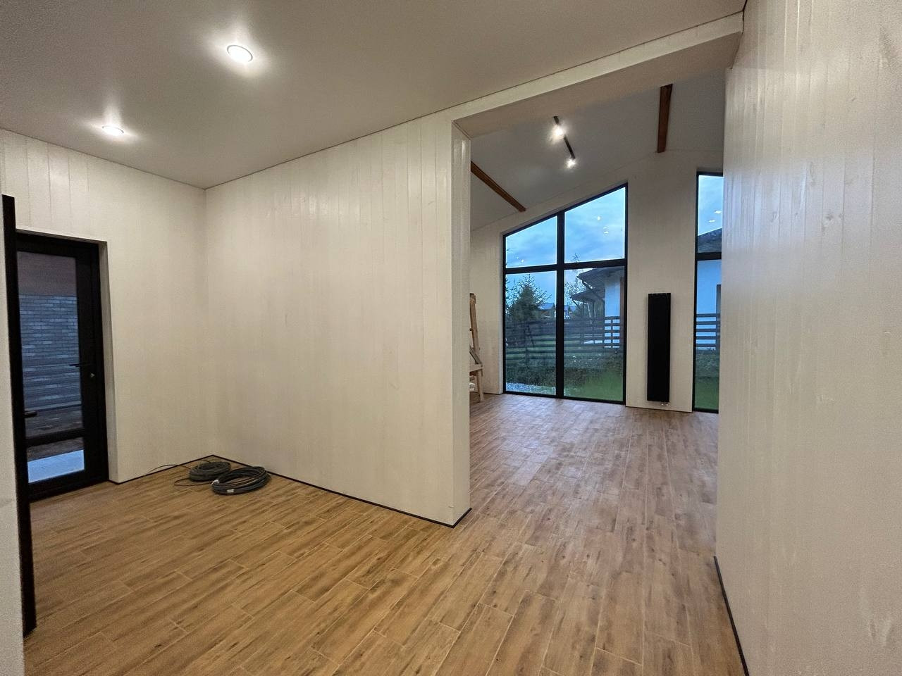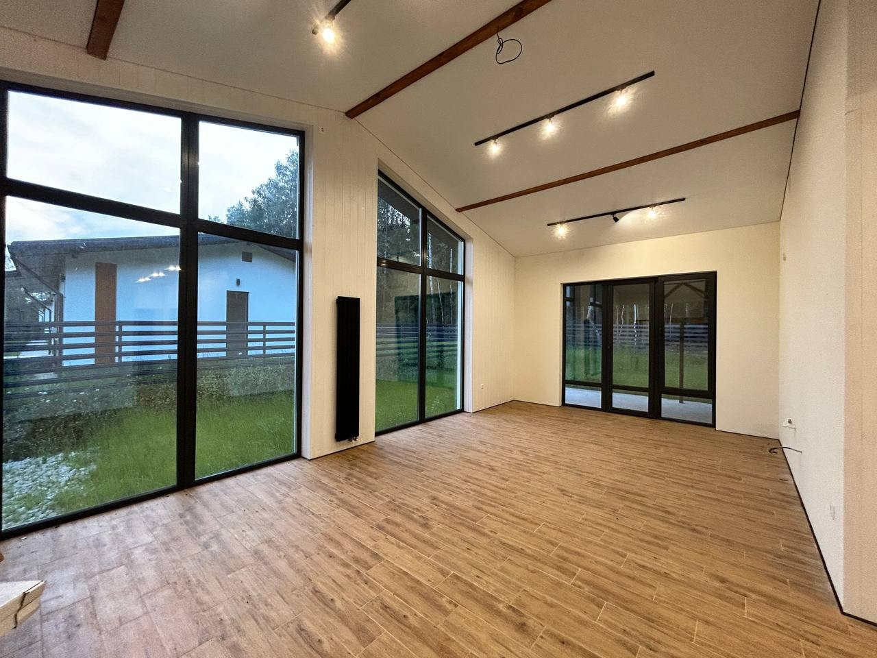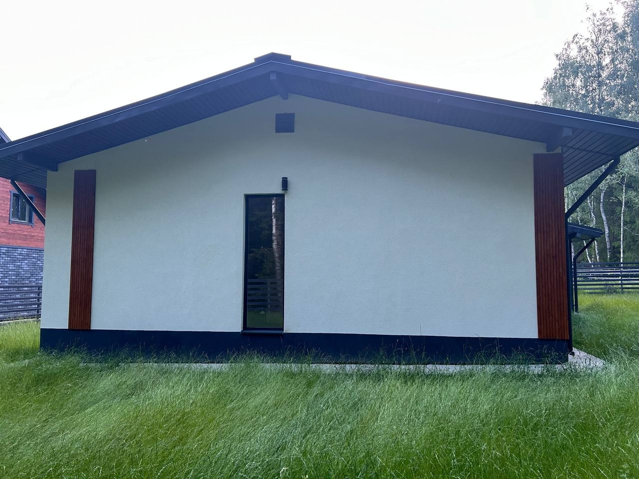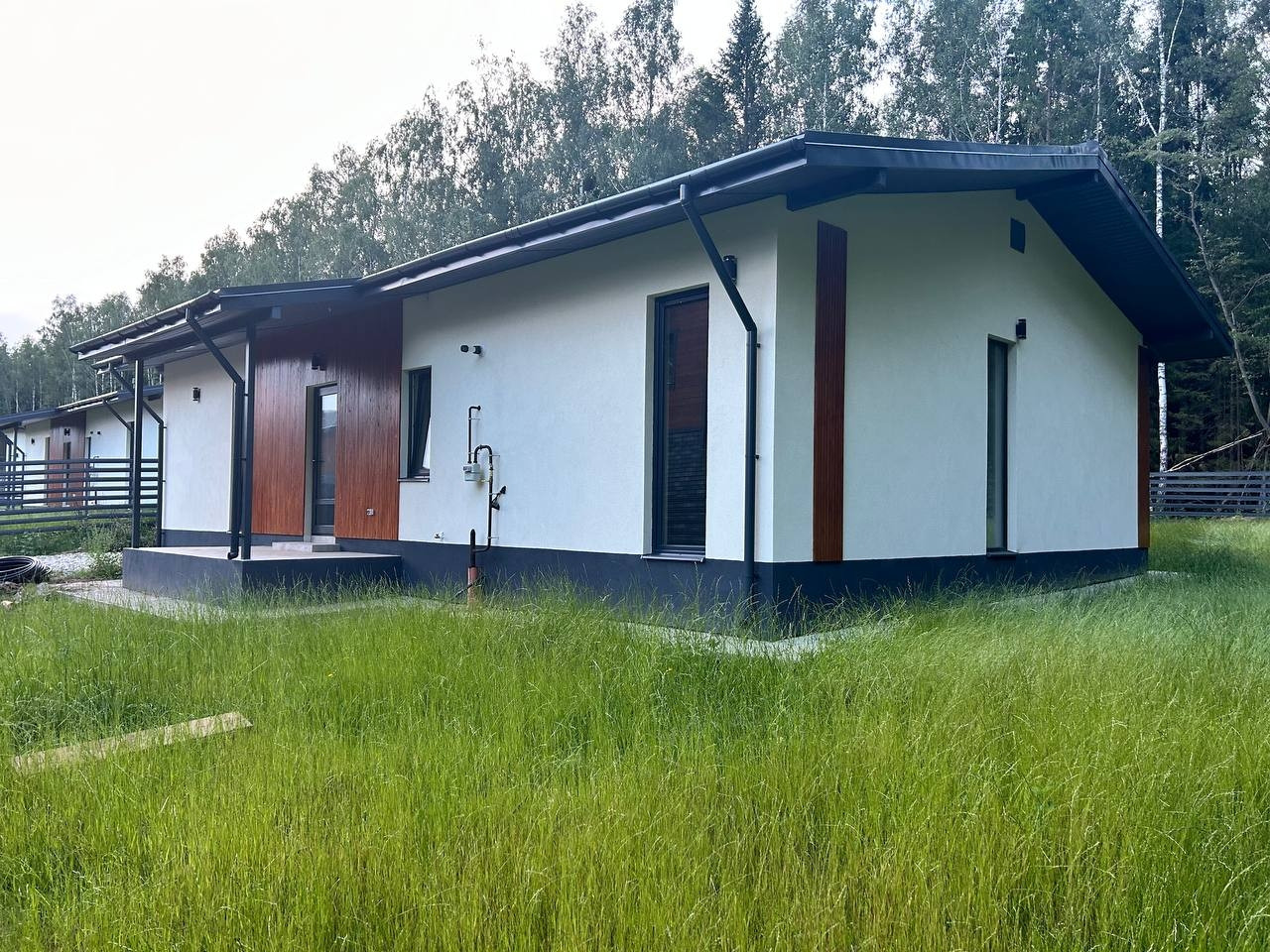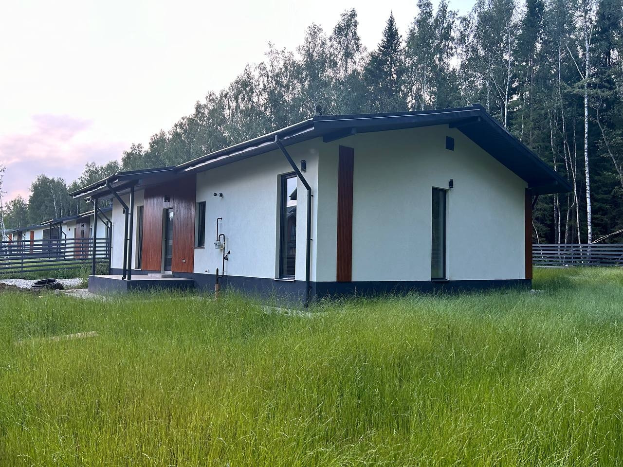 Фундамент - монолитная армированная плита. Крыша – мягкая кровля, окна - двухкамерные стеклопакеты Rehau. В доме по всему первому этажу и в жилой комнате водяной теплый пол, потолки натяжные. Стены газоблок + утеплитель. Вентилируемые фасады и кровля. Откатные ворота, забор по всему периметру участка, до дома бетонированная дорожка, отмостка. Ровная подъездная дорога от шоссе до поселка. Круглогодичный подъезд.