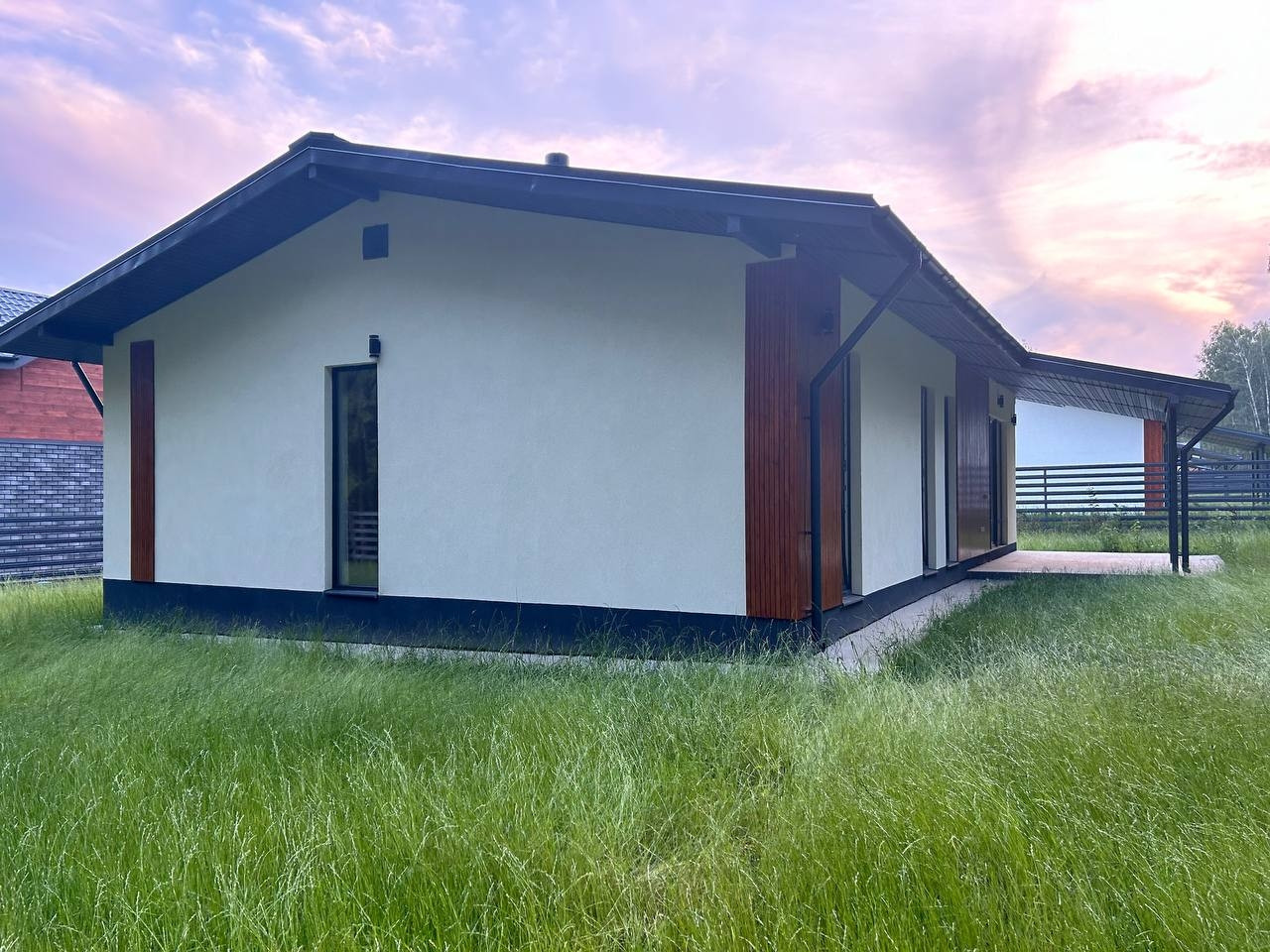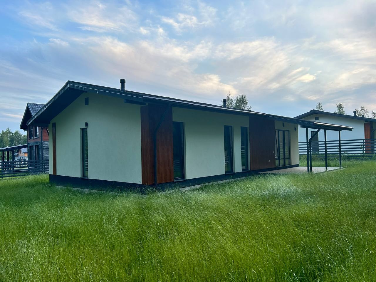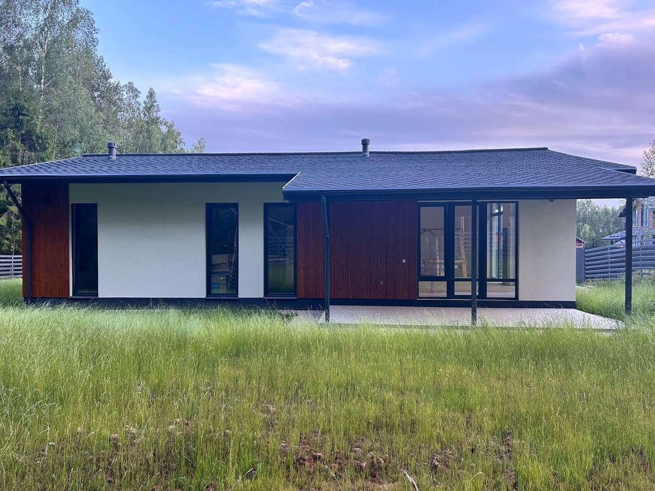 Современный стильный дом с большими панорамными окнами во всех комнатах, которые обеспечивают максимум естественно света и создают уютное пространство для каждого из членов семьи.