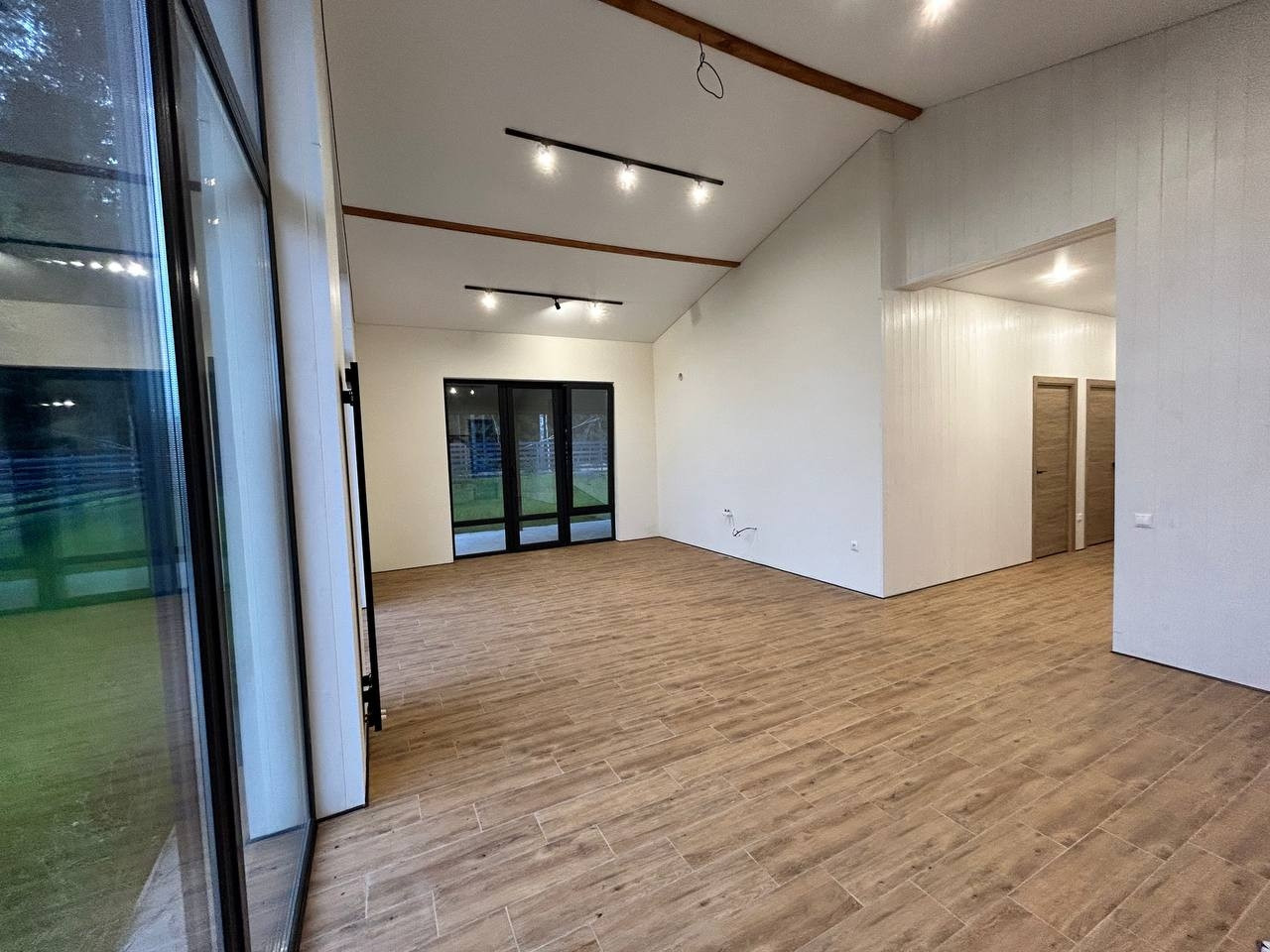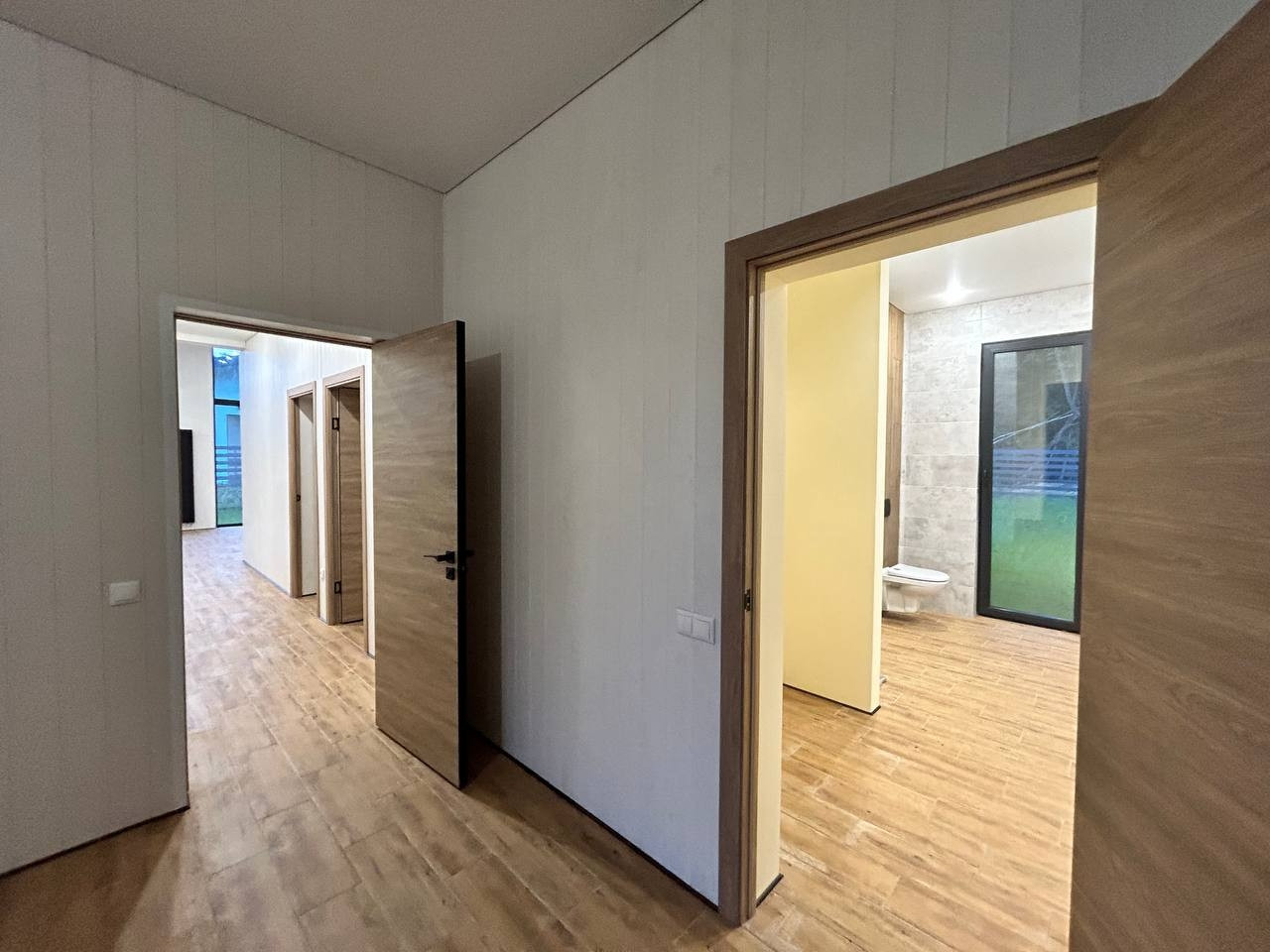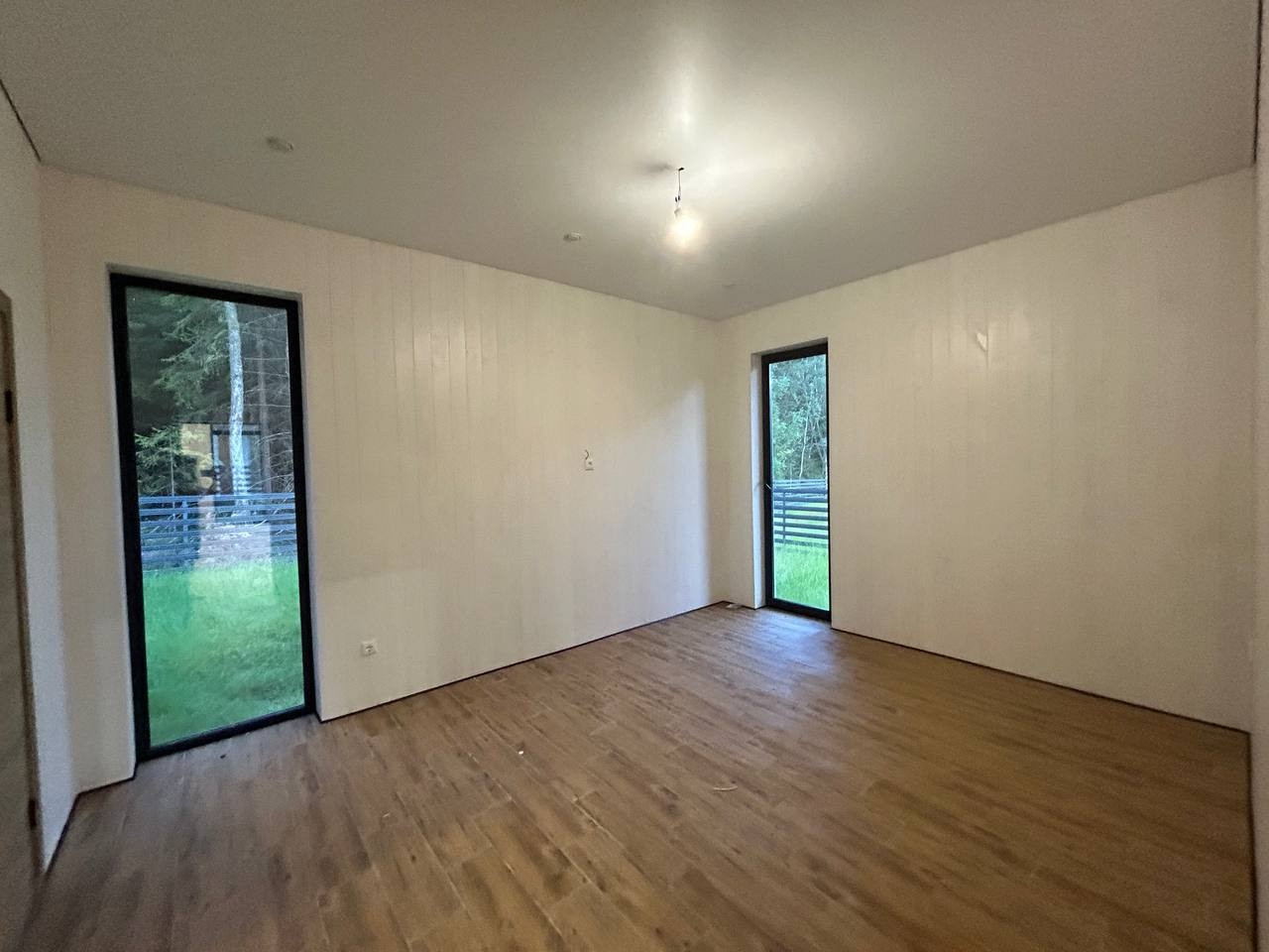 Дом имеет отличную планировку: светлая кухня-гостиная с высоким потолком и выходом на террасу, 2 комнаты и мастер спальня (с выходом на террасу, гардеробной и санузлом), прихожая, бойлерная, коридор, санузел.